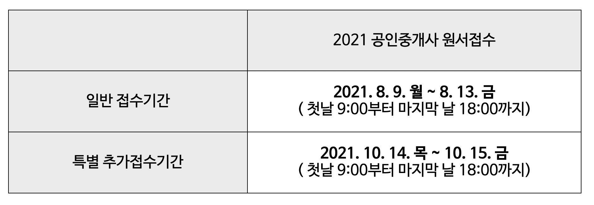 2021년 공인중개사 시험일정 & 원서접수 날짜 & 시험과목 총정리