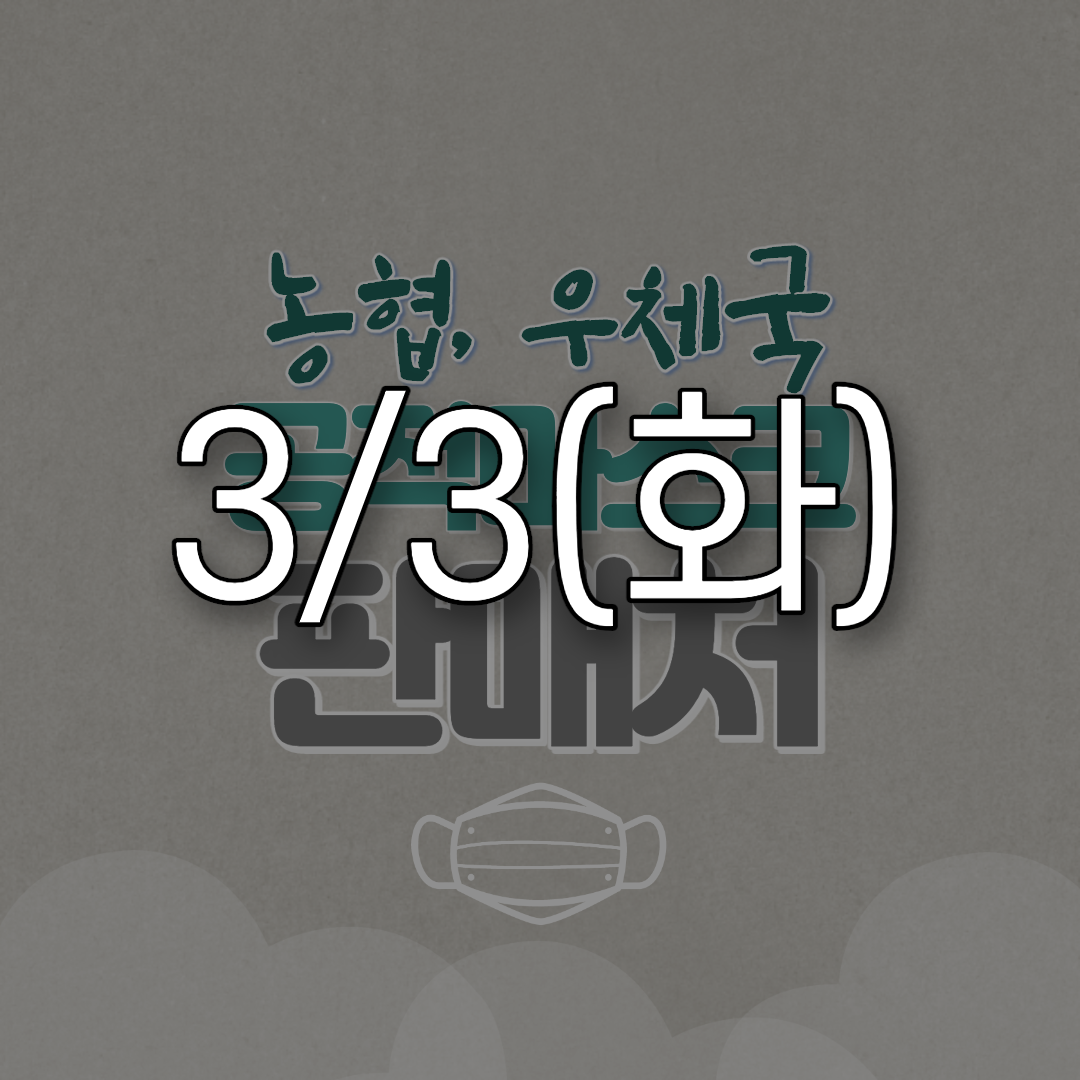 3월 4일 공적마스크 판매처 (하나로마트, 우체국) (0) | 2020.03.03 |