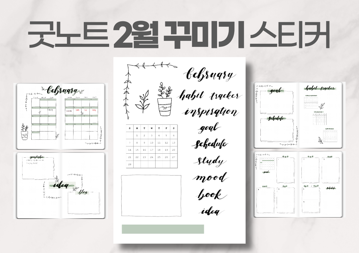 굿노트 디지털 불렛저널 꾸미기 스티커 세트 / Goodnotes Digital Bullet Journal February Sticker Set Free