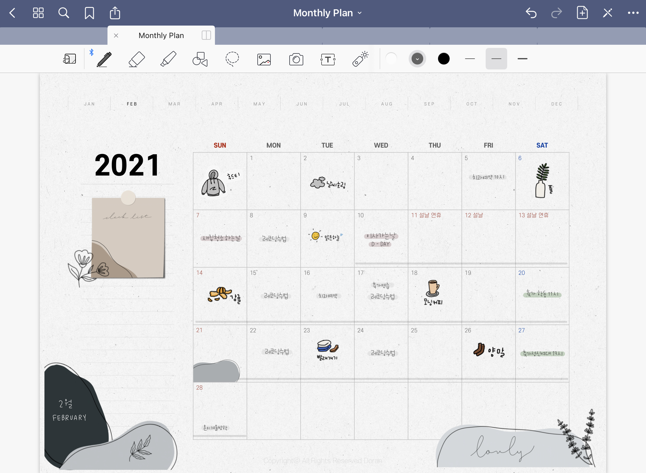 굿노트 2021 다이어리 먼슬리 12장 안녕하세요 도란입니다. 오늘은 아이패드 굿노트에서 사용 가능한 2021 먼슬리 다이어리를 가지고 왔습니다 :) 가장 중요하게 변경된 사항은 바로 A4사이즈입니