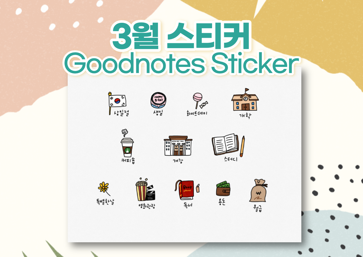 안녕하세요 도란입니다. 오늘은 아이패드 굿노트에서 사용할 수 있는 디지털 스티커 3월 버전을 만들어 보았습니다 :)