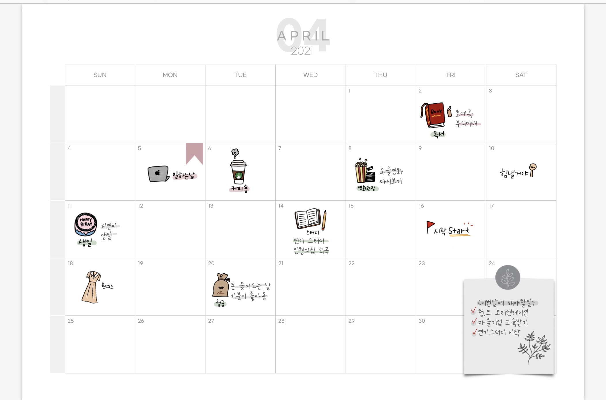 안녕하세요 도란입니다. 오늘은 4월 하이퍼링크 월간 다이어리 속지를 가지고 왔습니다. :)