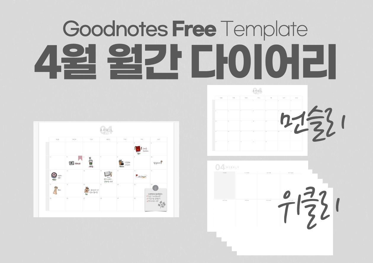 | 굿노트 4월 세로형 월간 다이어리 속지 무료 공유 Goodnotes Free Template (0) | 2021.04.01 |