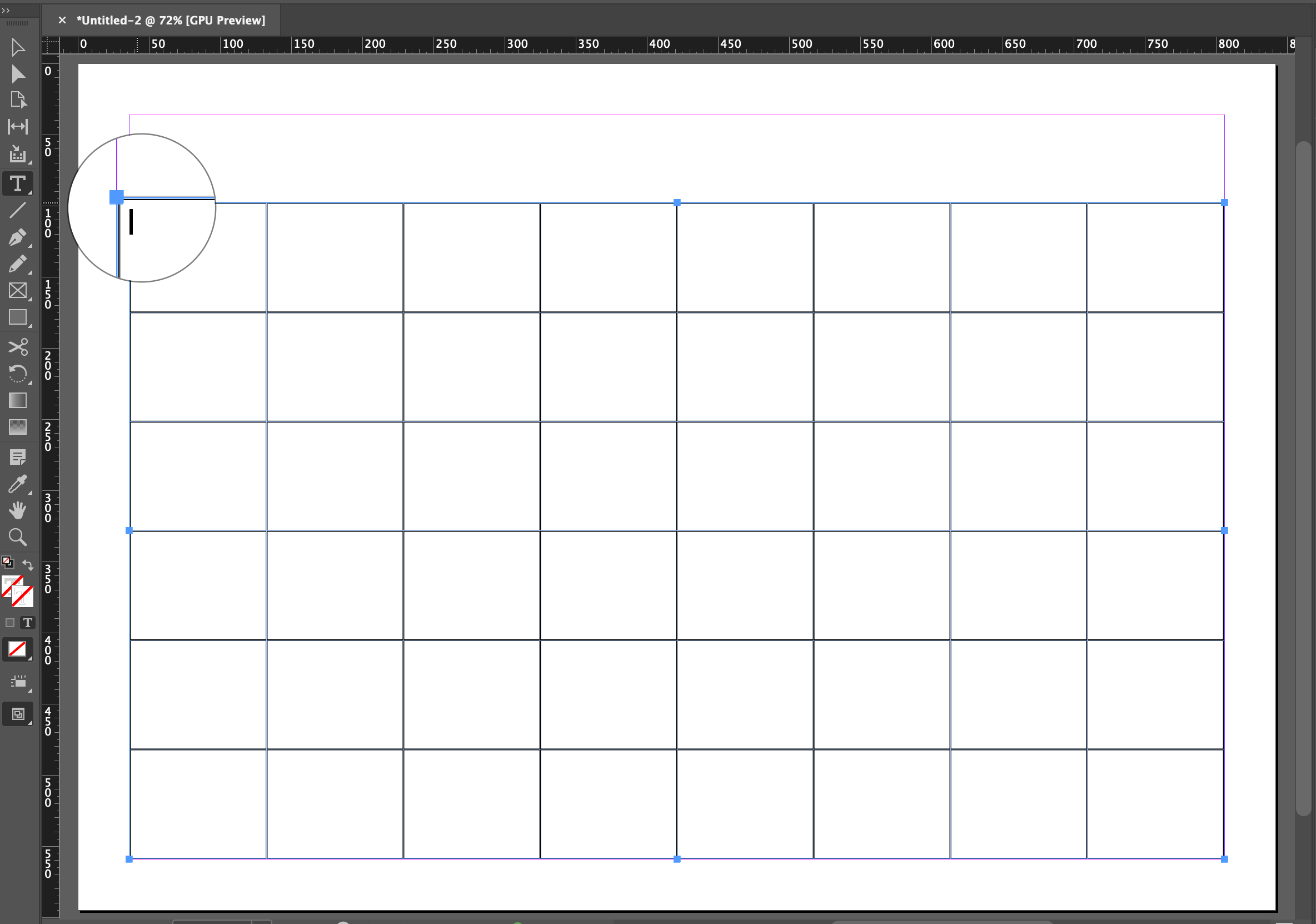 ▼ 아래와 같이 기본적인 먼슬리 다이어리 표가 완성되었습니다. (칸이 8개인 이유는 한 줄을 메모란으로 만들 예정이기 때문입니다.)