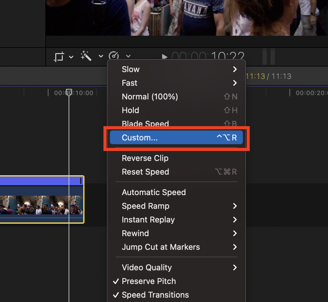 ▼ 만약 원하는 속도로 한번에 변경하고 싶을 때에는 속도 메뉴에서 Custom을 누릅니다