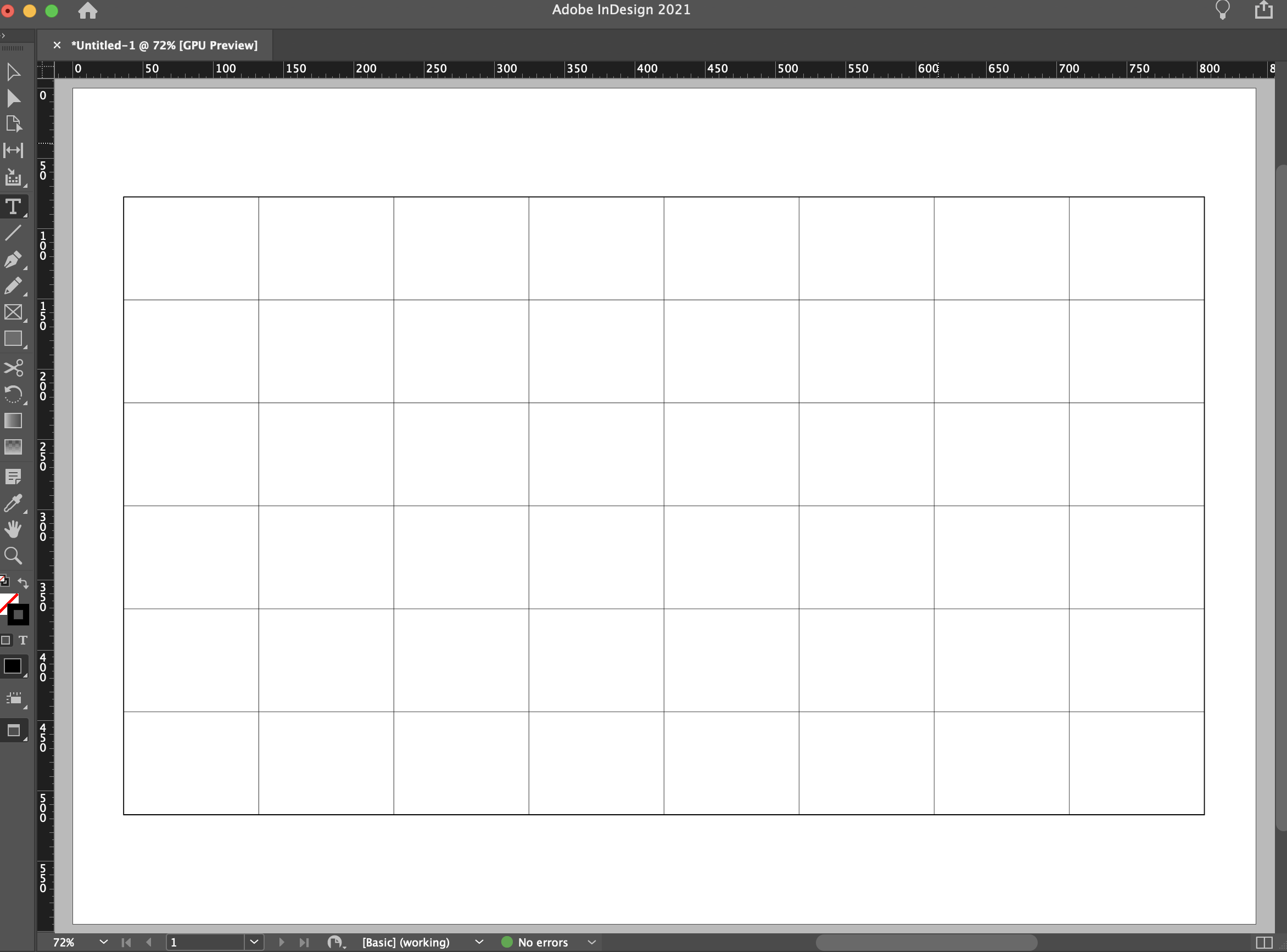 인디자인에서 표를 만든 뒤 중간에 있는 선을 없애보겠습니다. 먼저 이전 글에서 만들어 주었던 표를 불러옵니다.