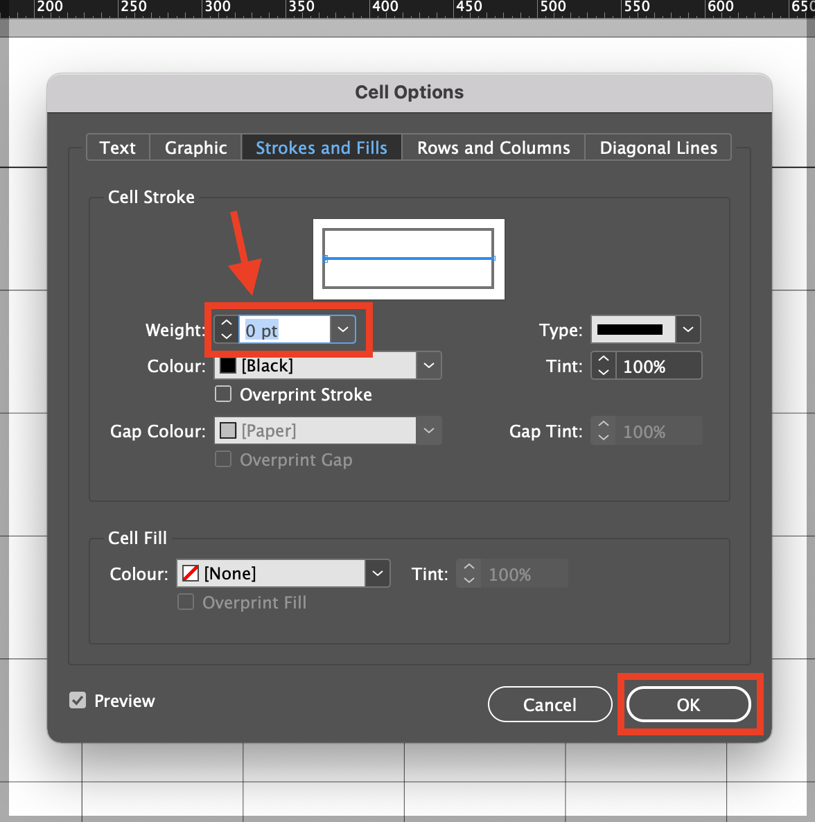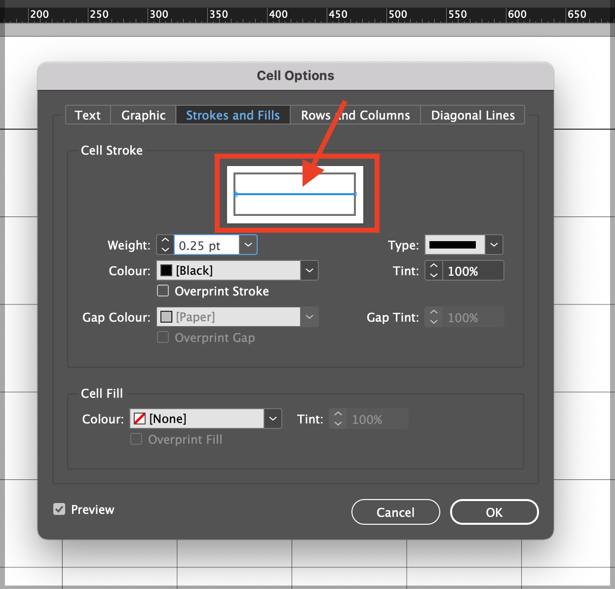 ▼ 그리고 상단 Table 메뉴에서 [Cell Options] - [Strokes and Fills] 메뉴를 선택합니다.