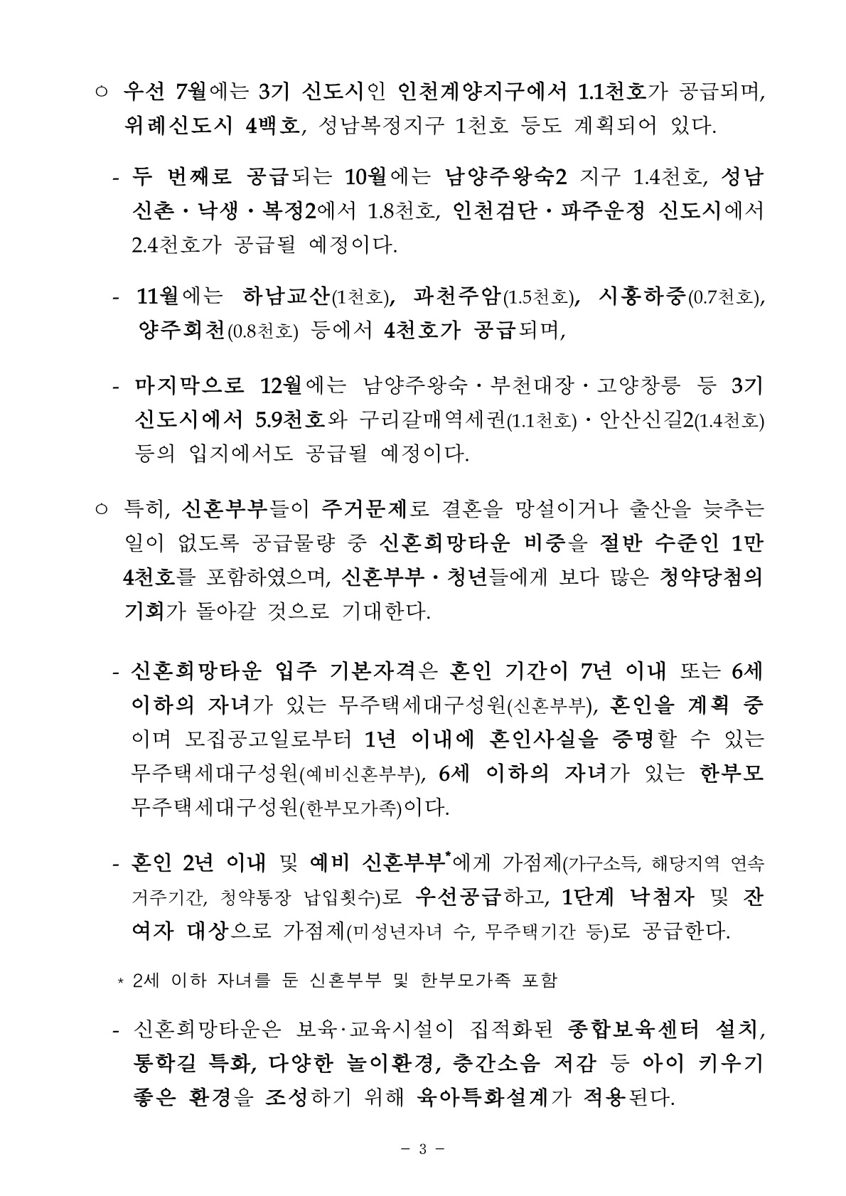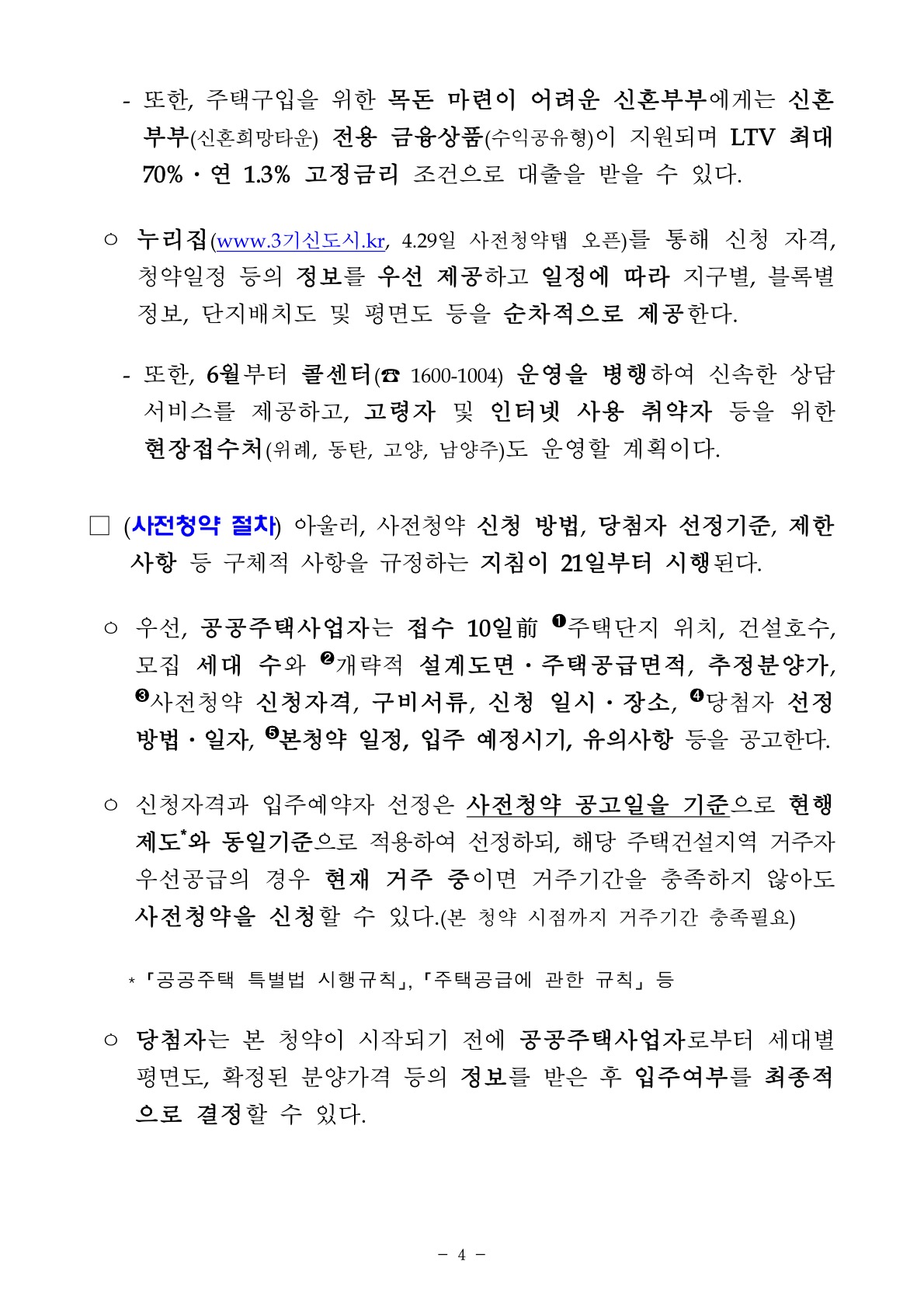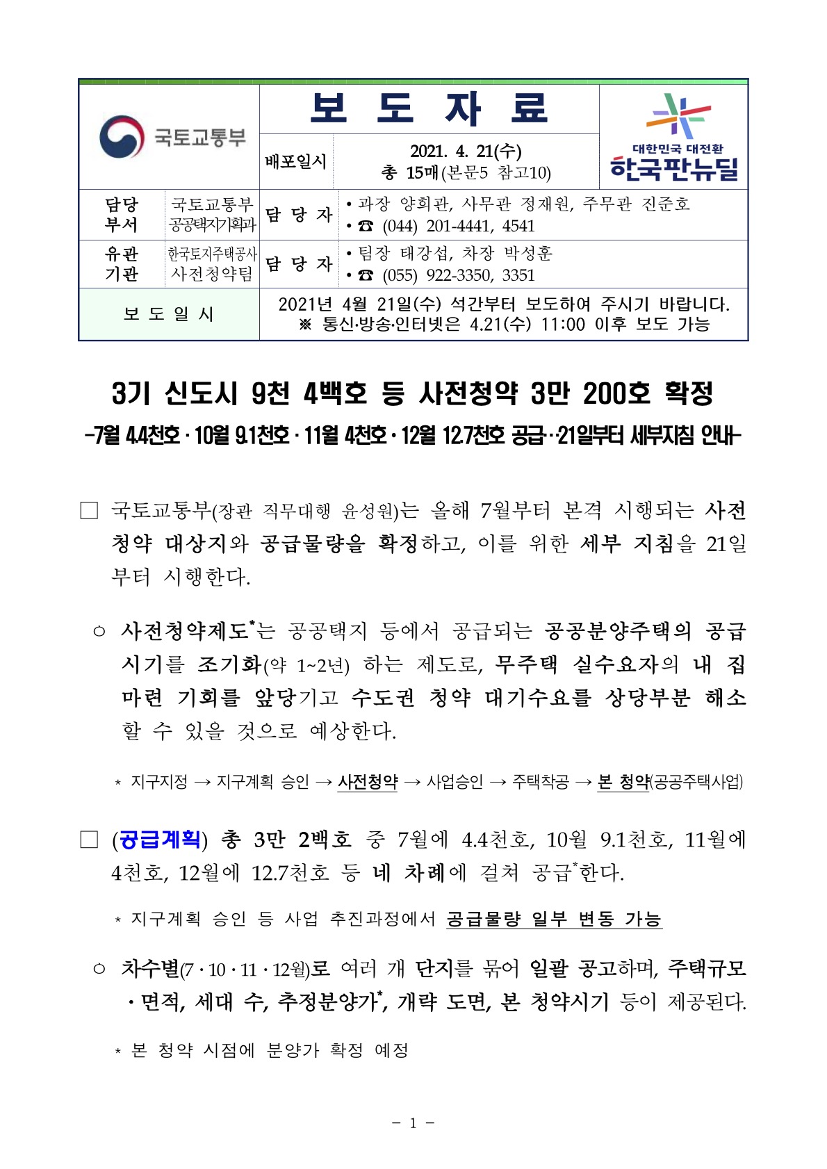 국토 교통부의 보도자료입니다. 3기 신도시 사정 청약 일정이 대략적으로 나와있습니다.