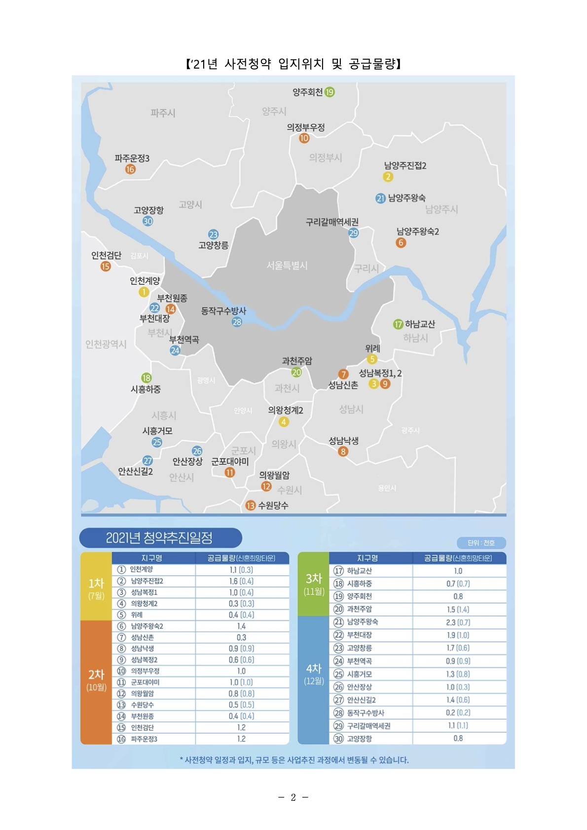 국토 교통부의 보도자료입니다. 3기 신도시 사정 청약 일정이 대략적으로 나와있습니다.