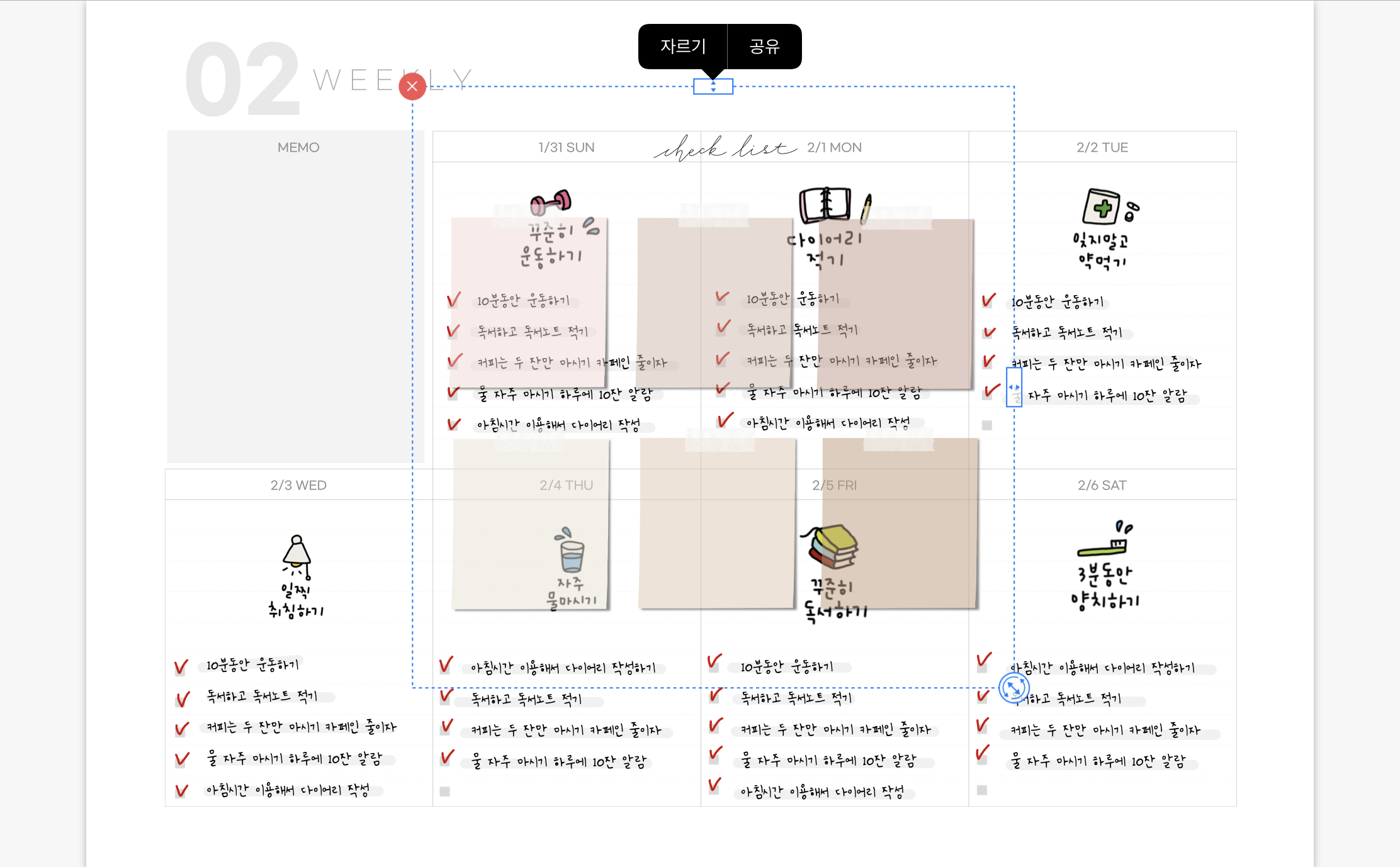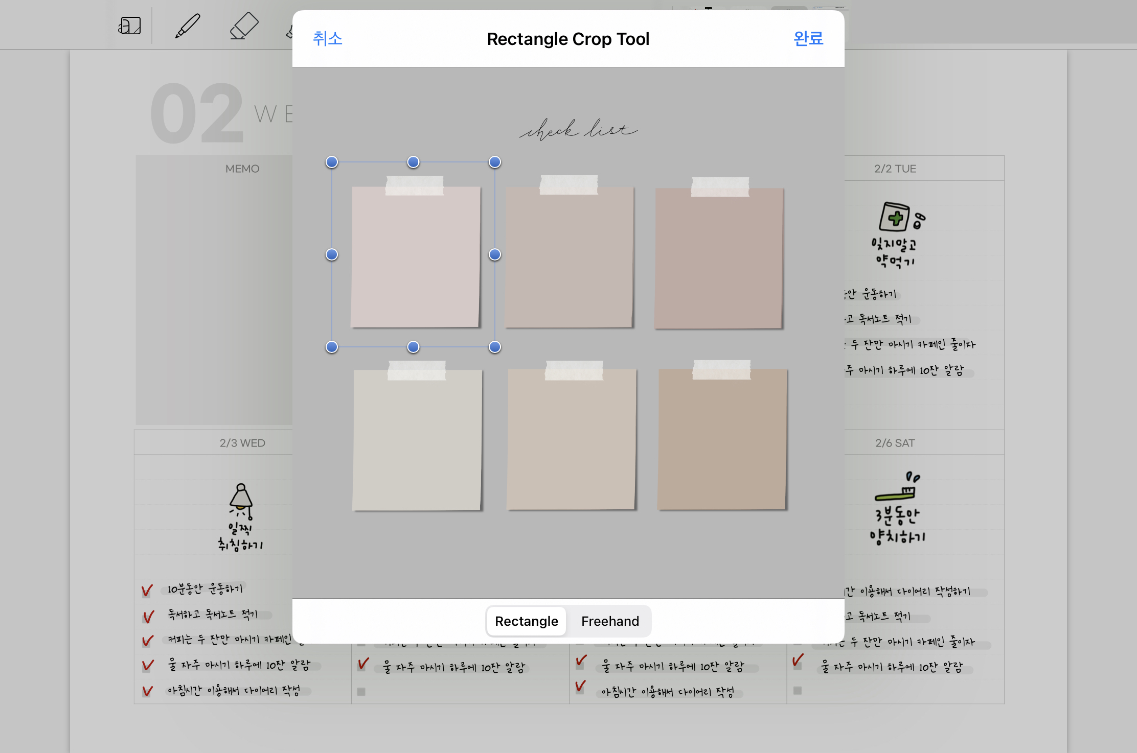 위에 체크리스트도 영어로 적어보았습니다. 굿노트에서 앨범을 누른 뒤 스티커를 가지고 오면 아래와 같은 화면이 됩니다.
