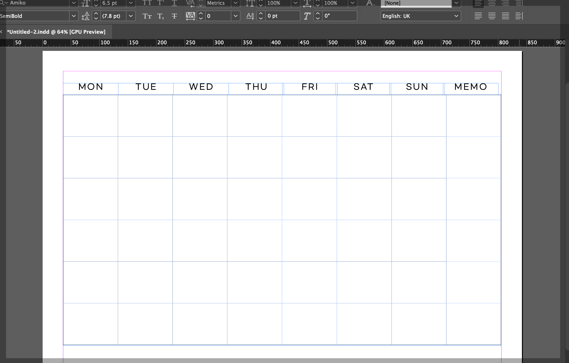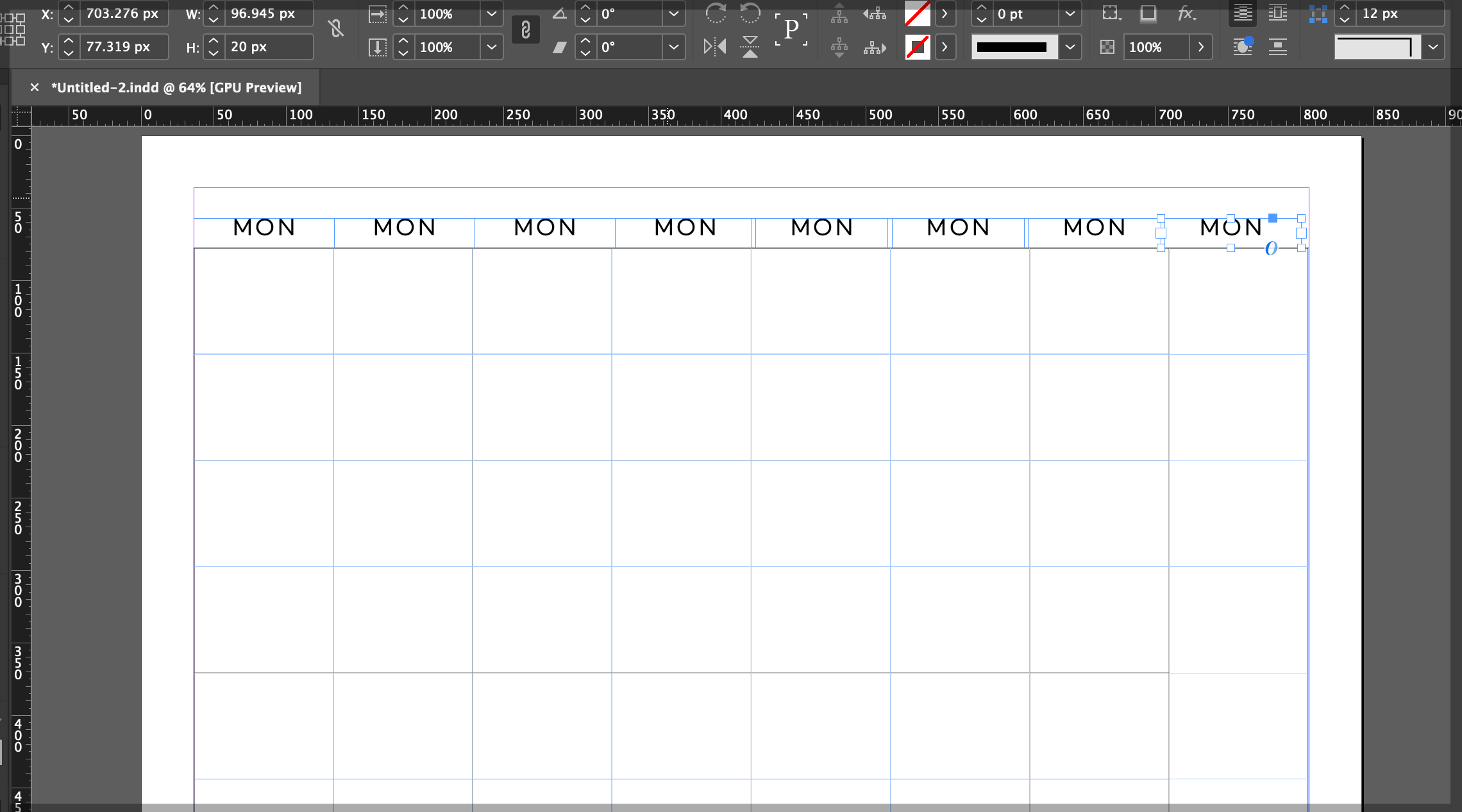 인디자인에서 표를 그려 상단에 텍스트 박스로 요일을 넣어주었습니다 :) 오늘은 여기까지. 이상입니다.