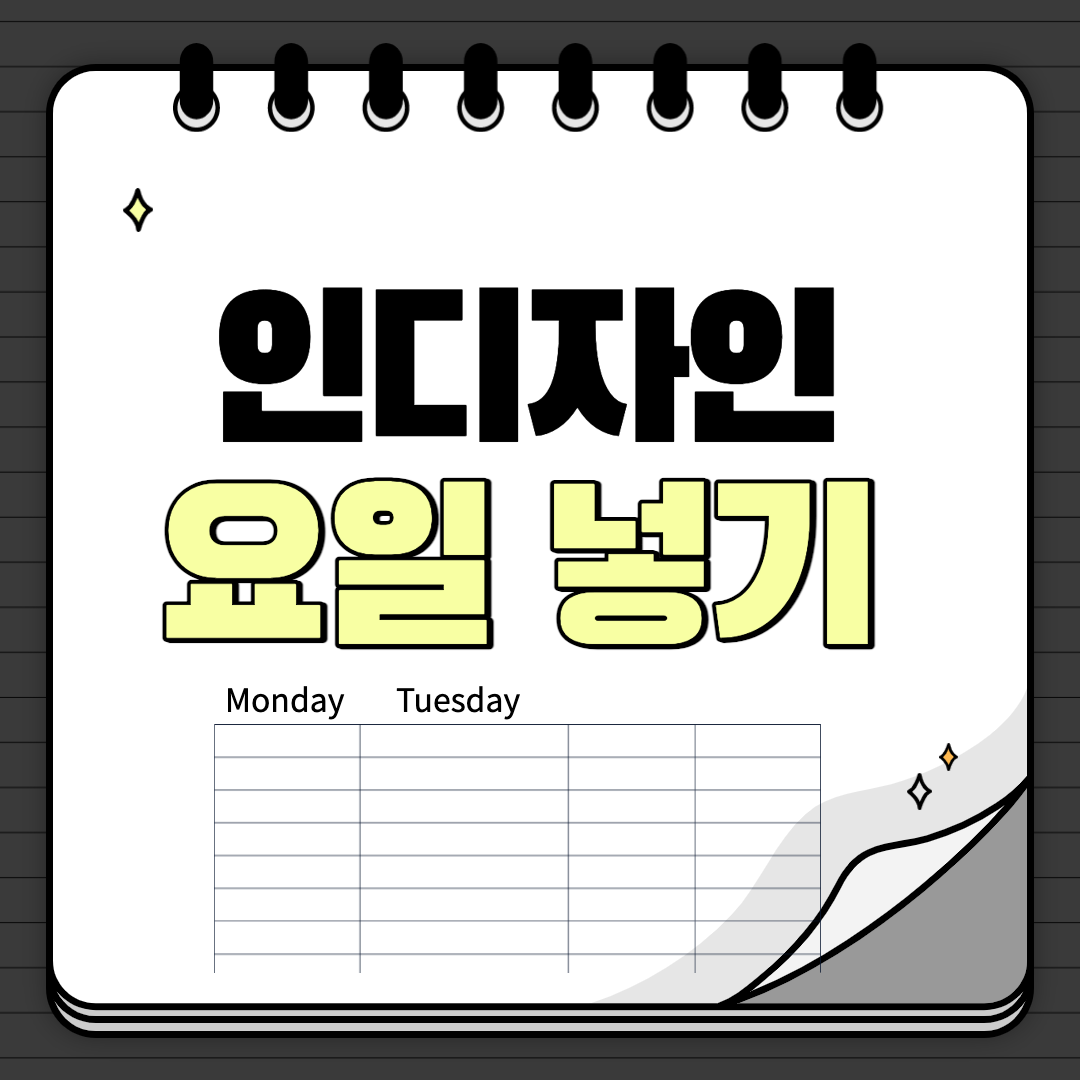 인디자인에서 표를 그려 상단에 텍스트 박스로 요일을 넣어주었습니다 :) 오늘은 여기까지. 이상입니다.