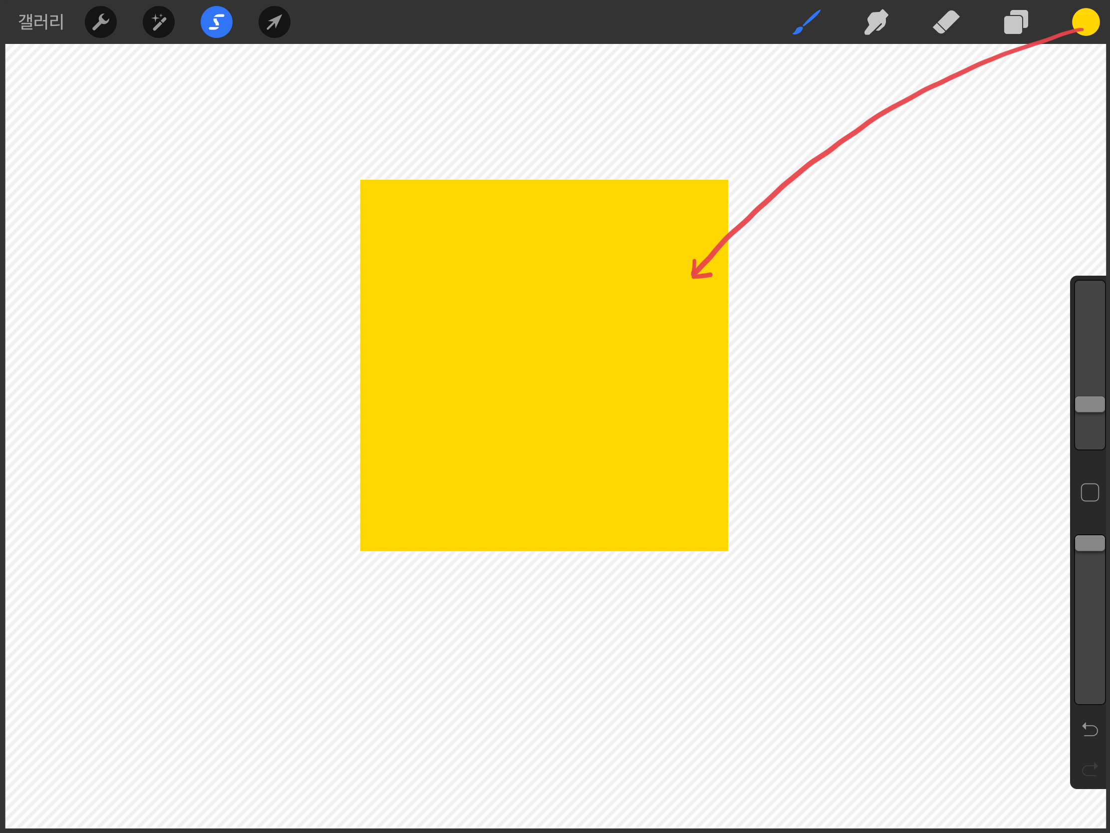 ▼ 그리고 컬러를 선택한뒤 펜슬을 이용해서 사각형까지 죽 끌고와주세요. 그러면 자동으로 색상이 채워집니다.