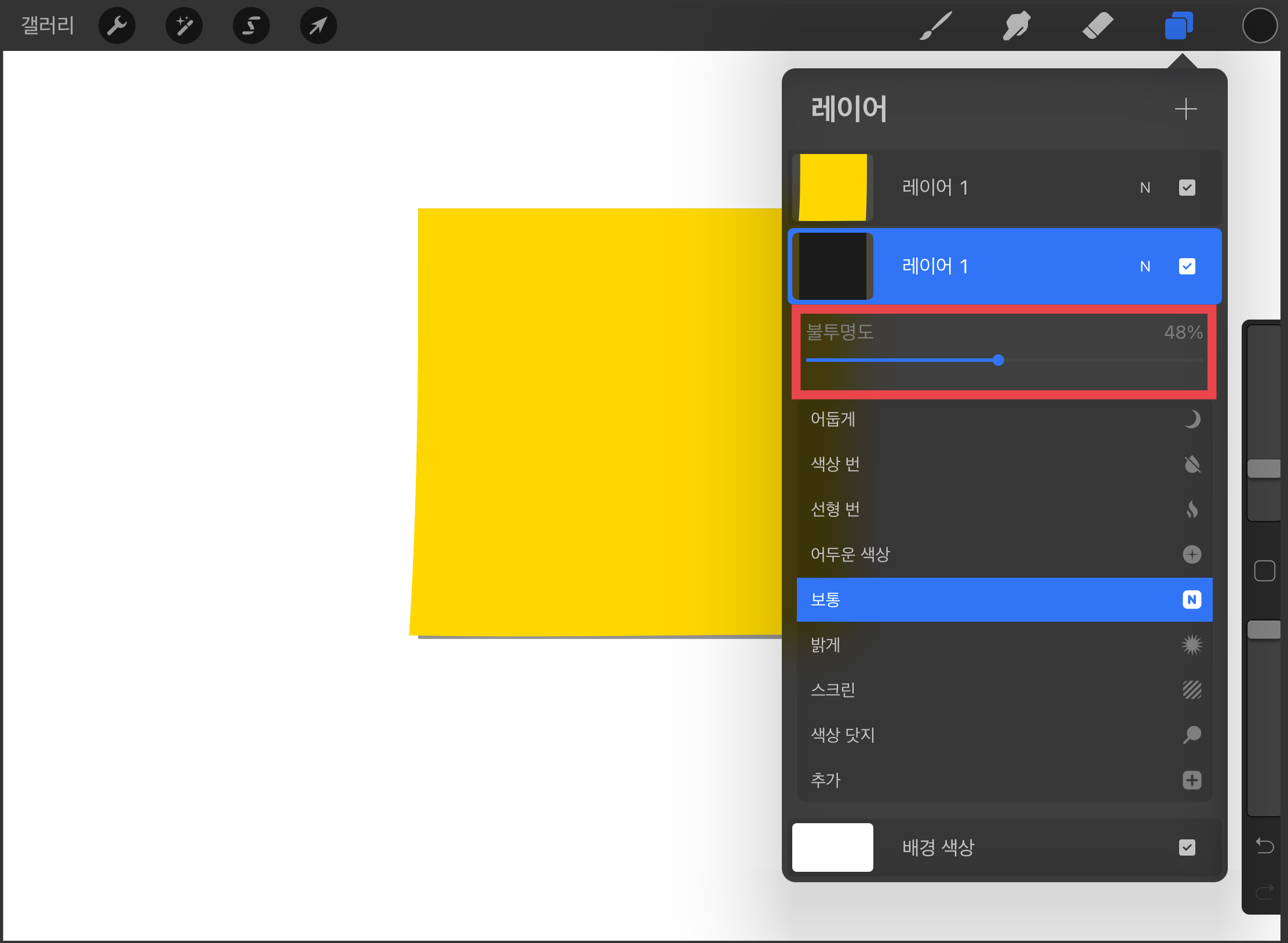아이패드 드로잉어플 프로크리에이트에서 포스트잇을 간단하게 만들어 보겠습니다.