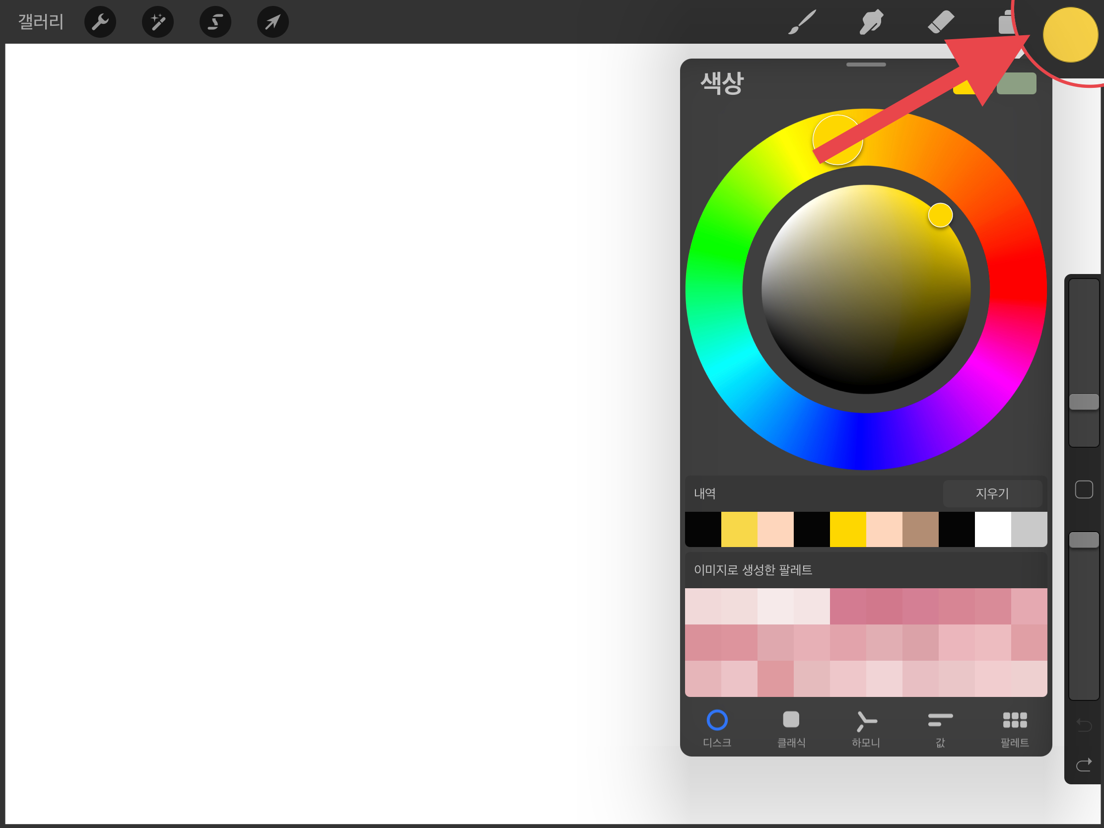 ▼ 먼저 새로운 캔버스를 열고, 오른쪽 색상에서 만들고자 하는 색상을 선택해주세요.