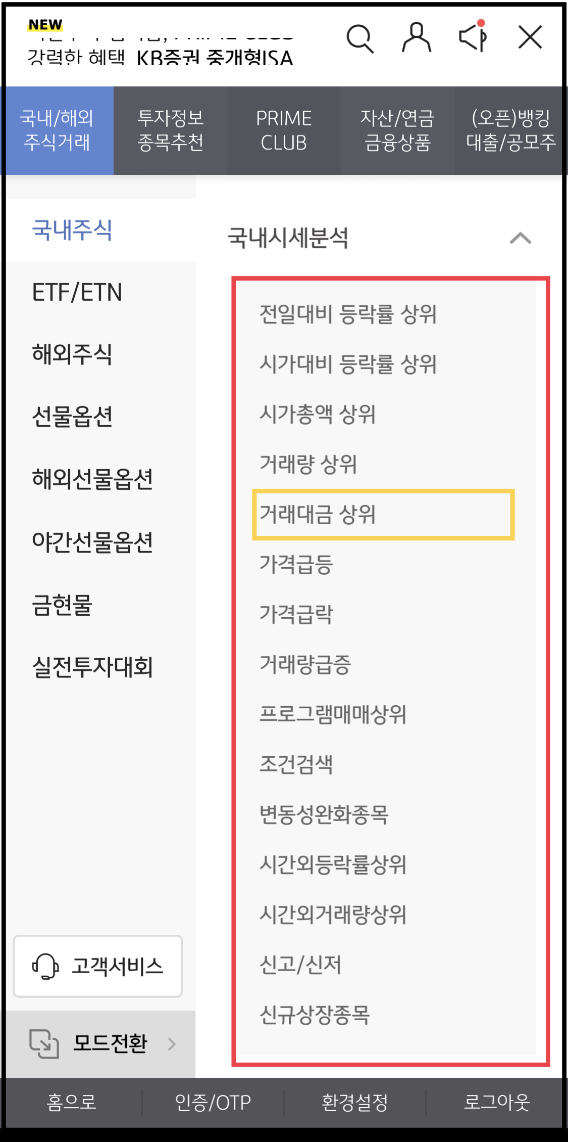 주식거래를 하다보면, 본인이 보유한 종목 말고 당일 거래량이나 거래대금 상위 종목을 확인하고 싶을때가 있는데요. KB증권 모바일 어플 M-able에서 거래대금 상위 종목 보는 방법을 알아보겠습니다.
