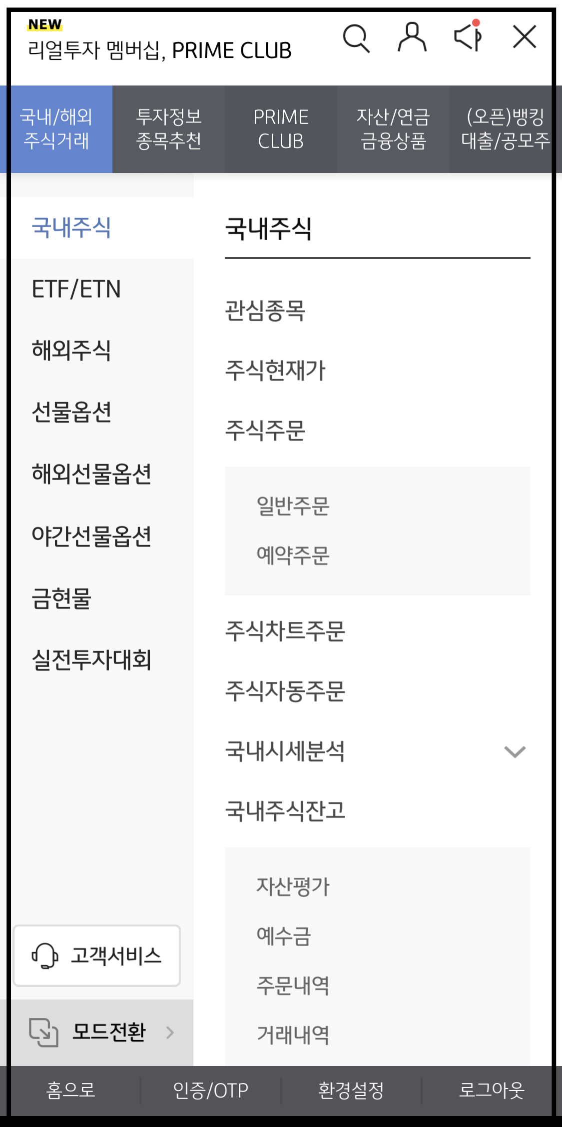 ▼ 왼쪽의 국내주식 메뉴를 누르고 [국내 시세분석]을 선택합니다.