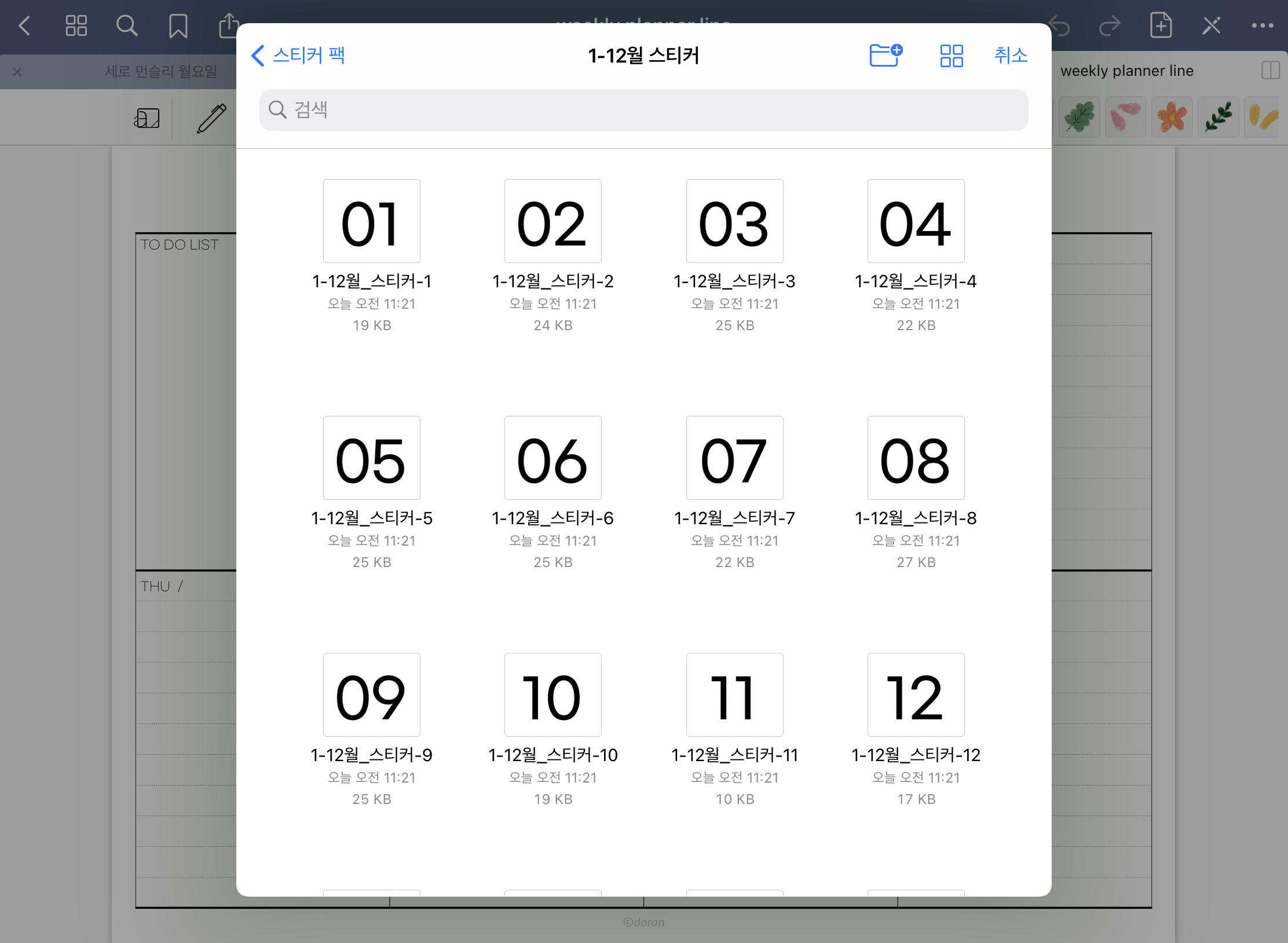 안녕하세요 도란입니다. 오늘은 아이패드 굿노트 어플에서 사용할 수있는 달력 스티커를 가지고 왔습니다.