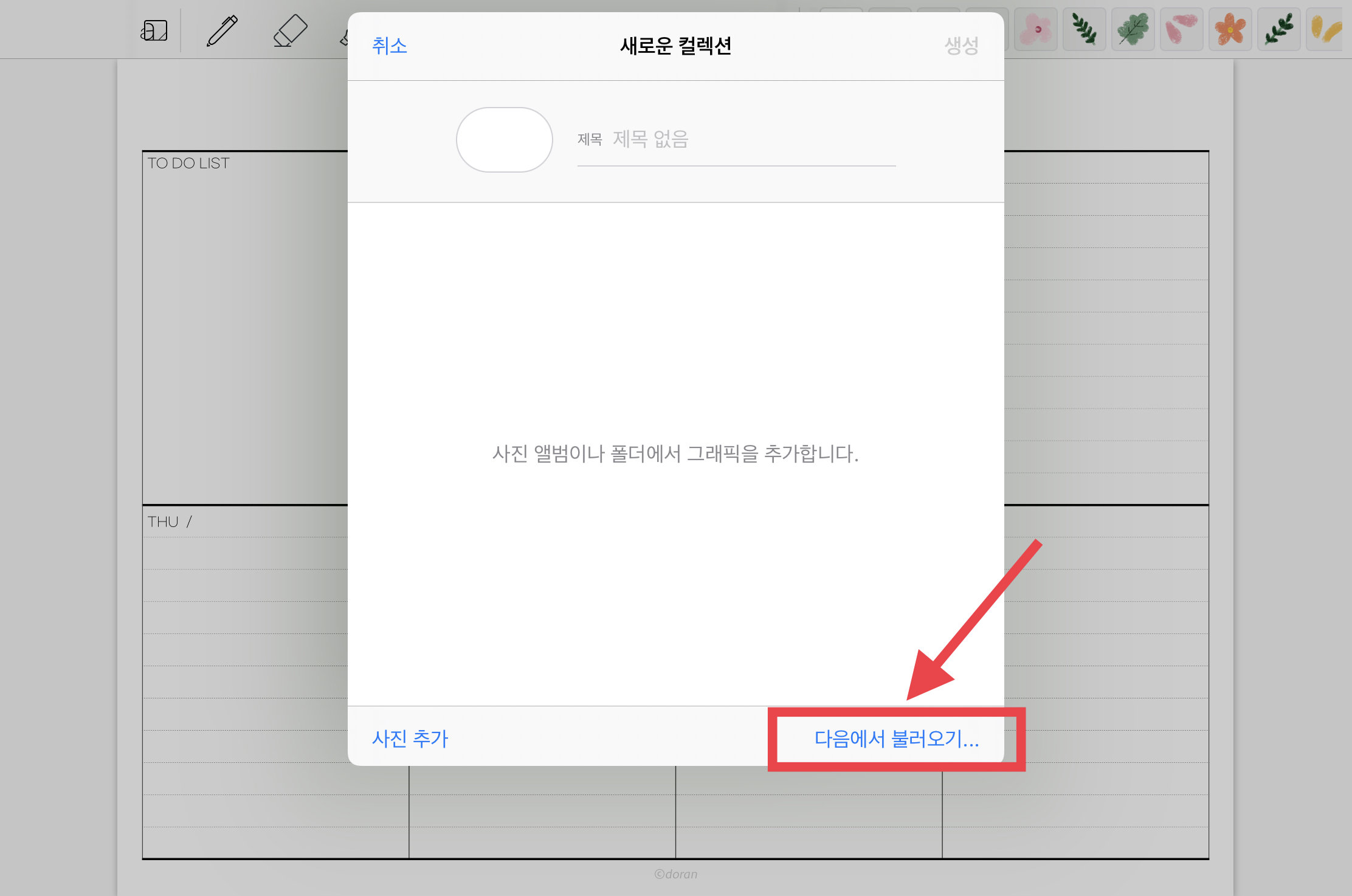 아이패드 굿노트에 스티커팩을 넣는 방법입니다.