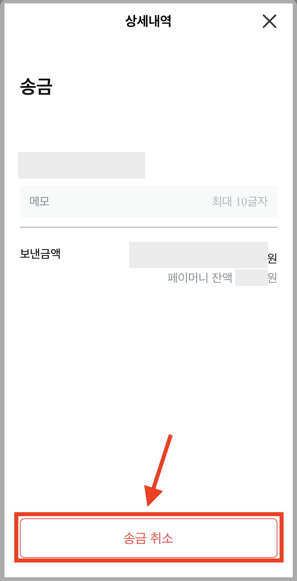 ▼ 바로 하단에 송금 취소 버튼이 나옵니다.