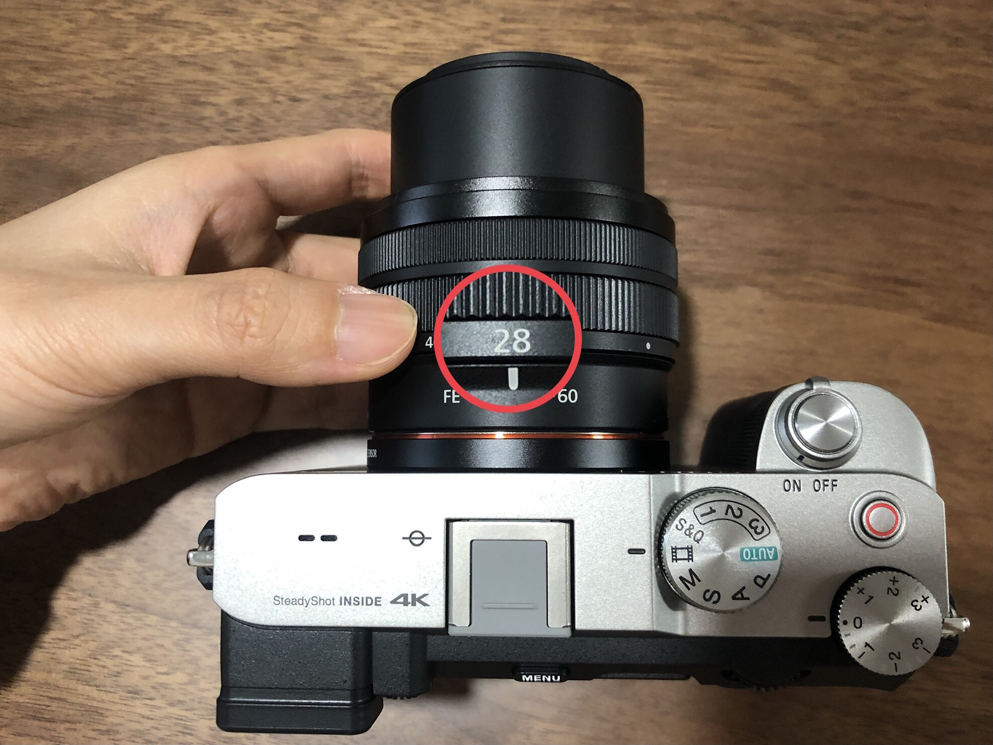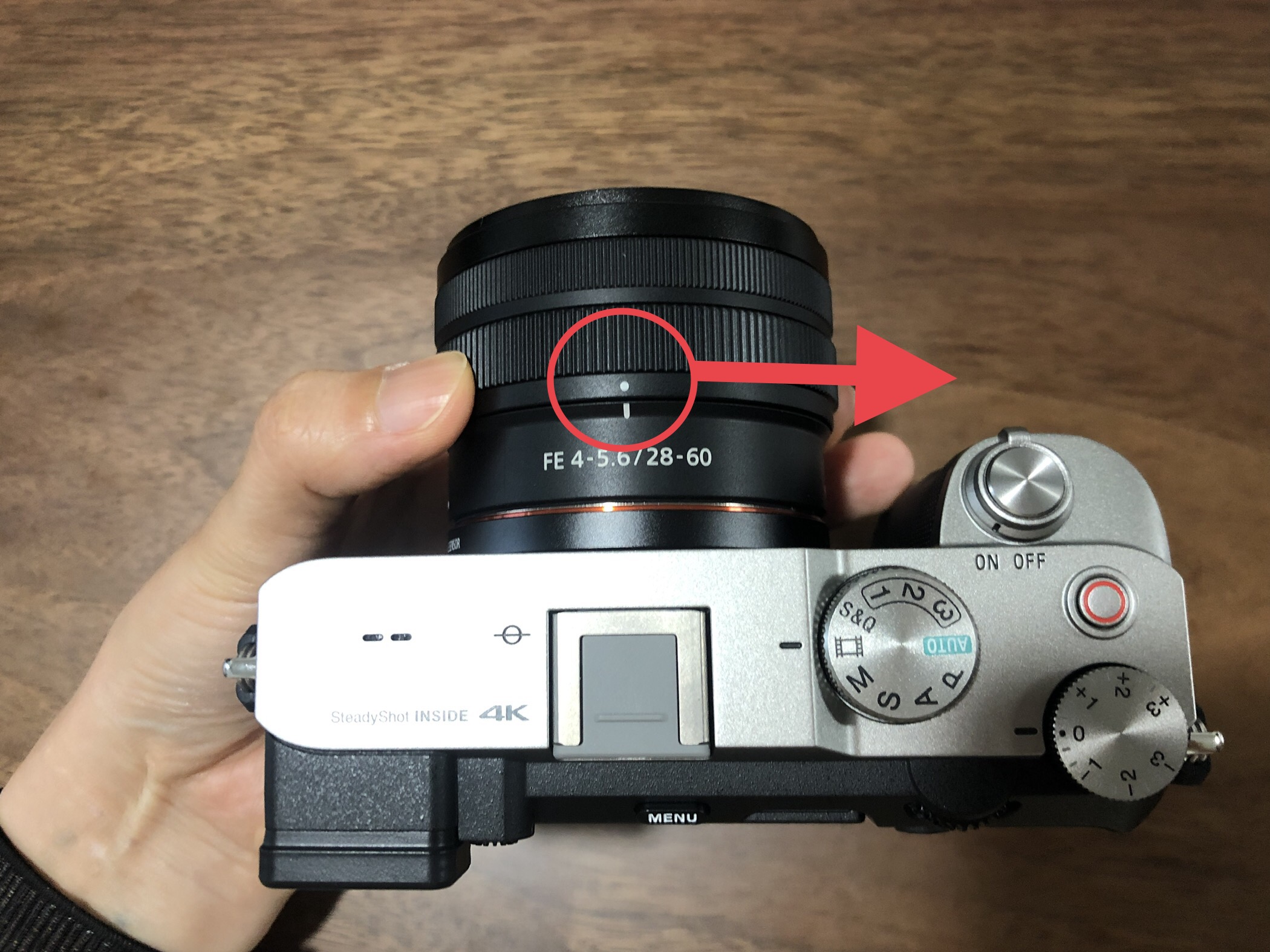 ▲ 위와 같이 카메라를 위에서 바라보면 렌즈에 하얀색 점이 있을 것입니다. 이 점을 오른쪽으로 돌려줍니다.