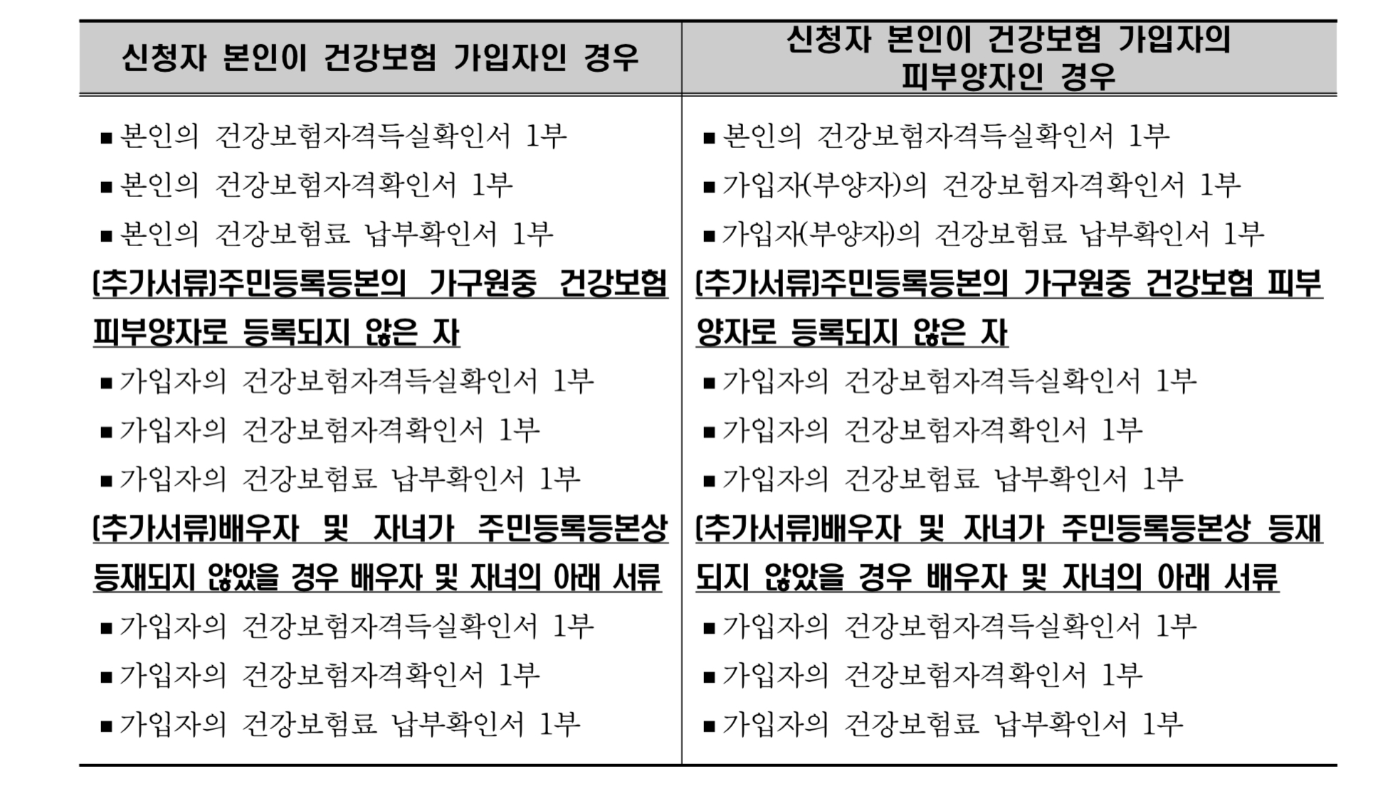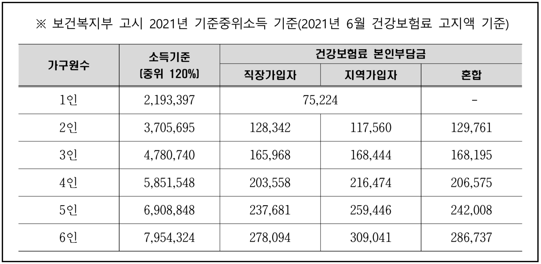 ※ 건강보험상 피부양자로 등록된 배우자와 자녀는 본인과 주민등록을 달리하고 있더라도 본인의 배우자나 자녀는 가구원에 포함