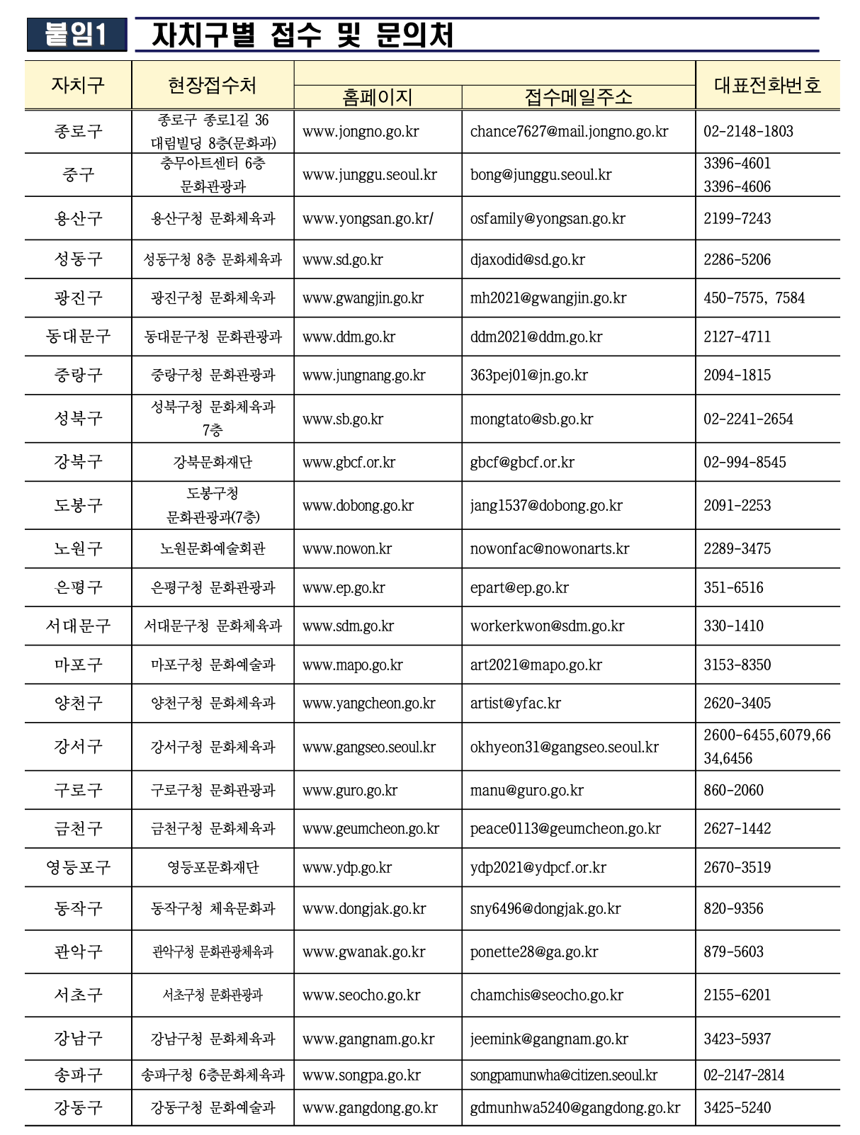 - 자치구별 방문접수처 (평일 오전 9시 ~ 오후 6시,(점심시간 12~1시)