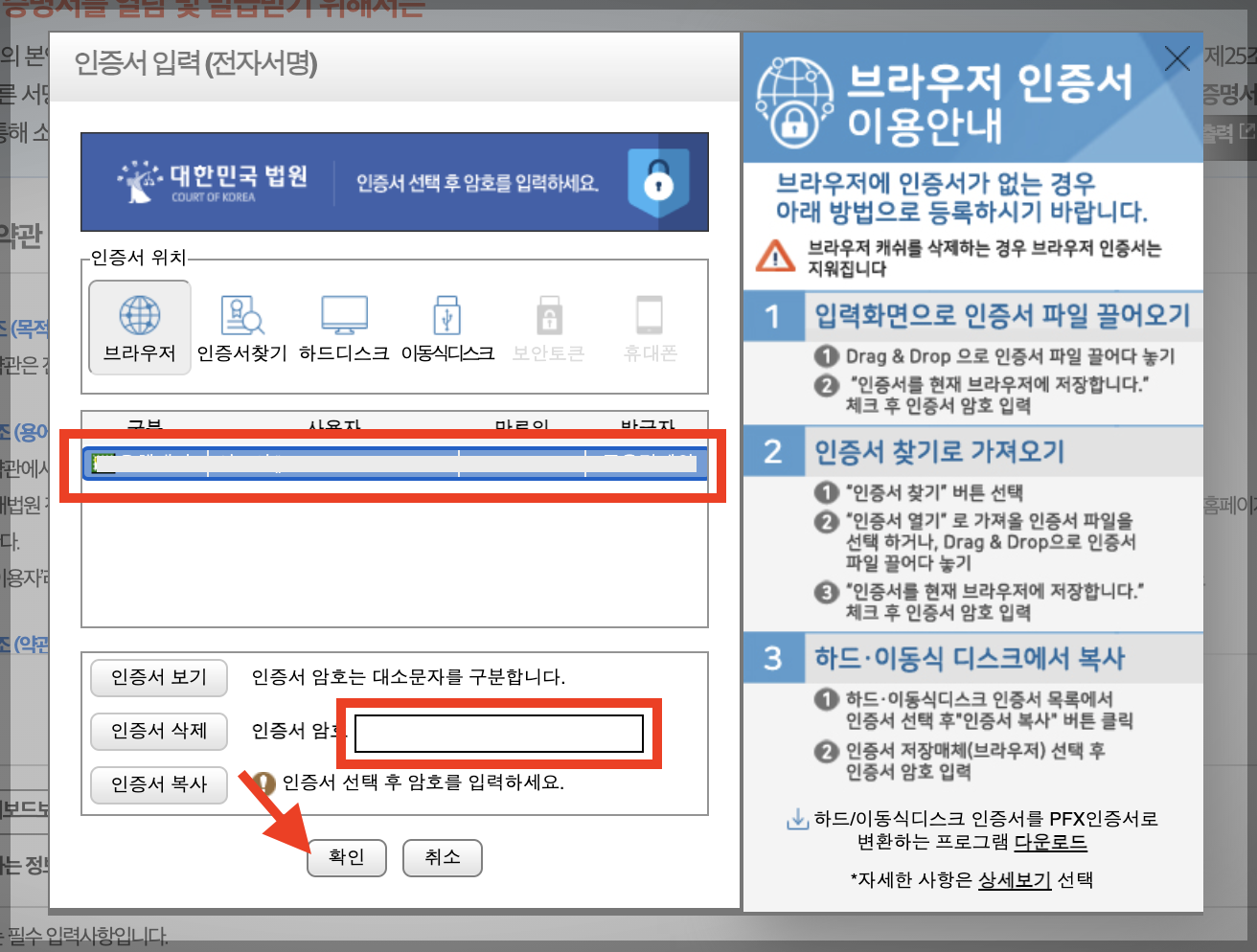 ▼ 인증서를 이용해서 본인 확인을 해주어야 합니다. (평소 인증서를 사용하지 않는 분들이라면 이 부분이 가장 어려울 거라 생각합니다.)