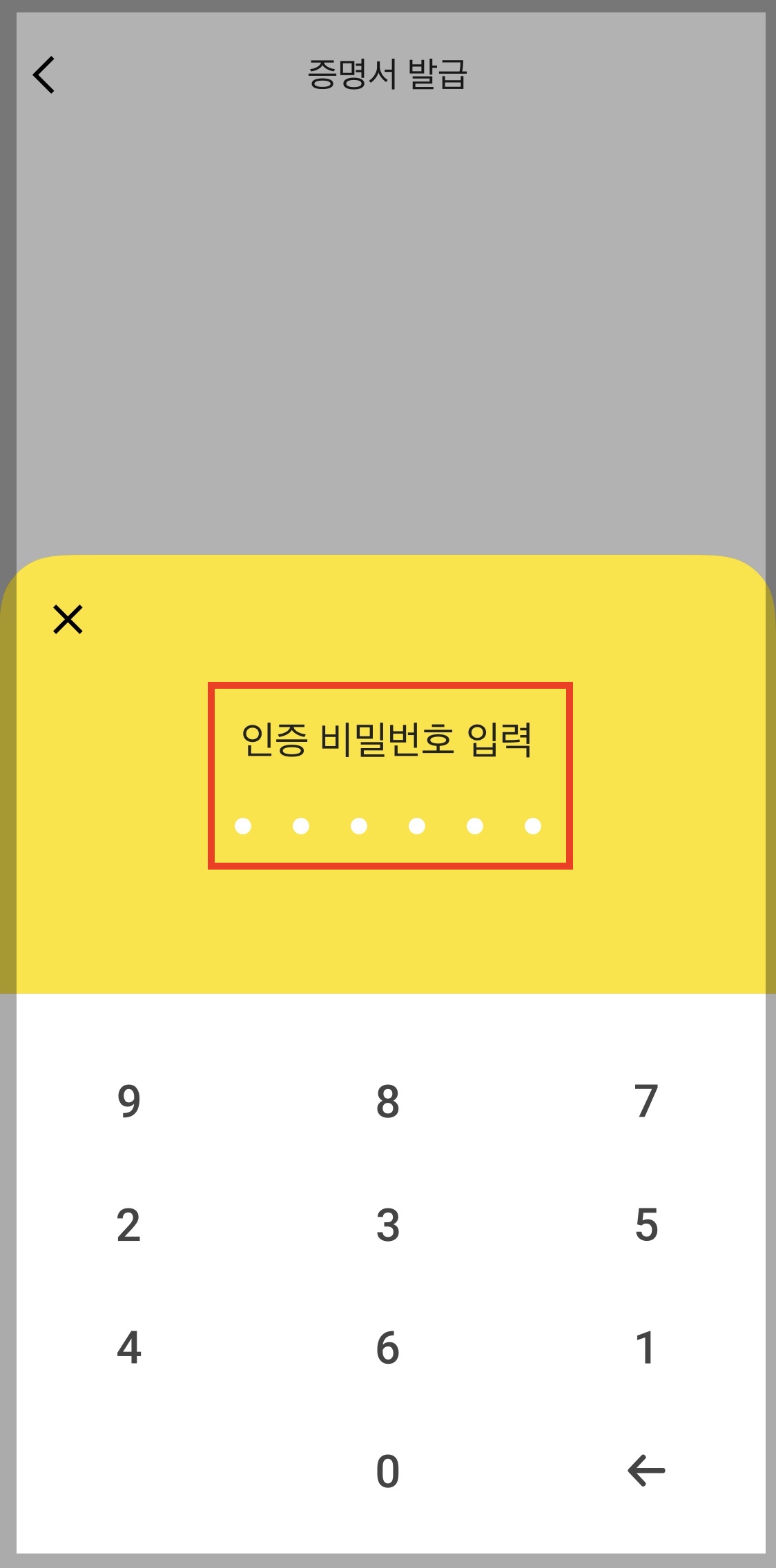 ▼ 인증 비밀번호 여섯 자리를 누릅니다.
