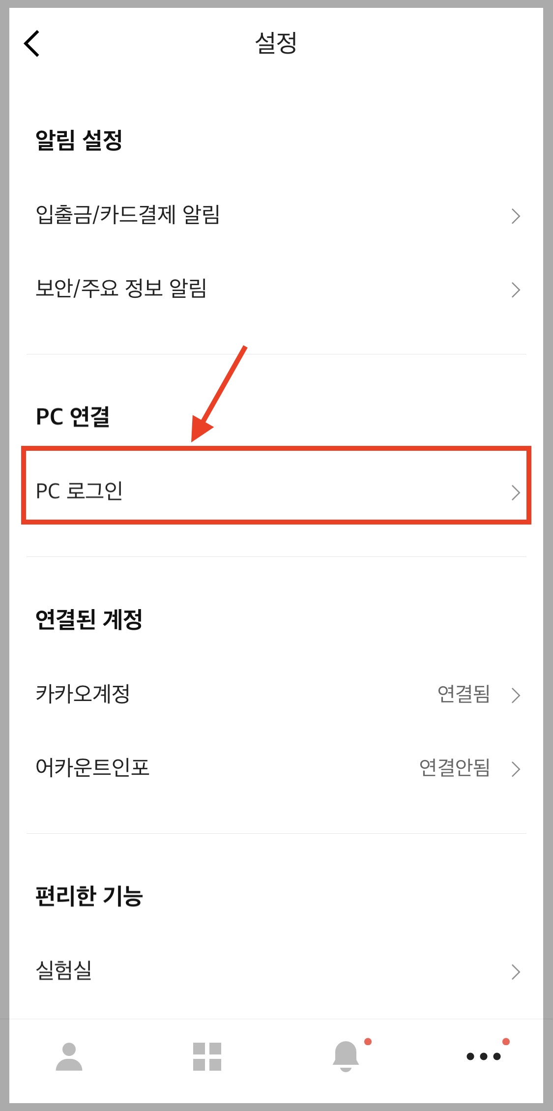 ▼ PC 로그인 메뉴를 선택합니다.
