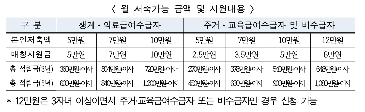 ○ 참가자가 3년 또는 5년간 매월 자녀 교육비 마련을 위해 일정금액을 저축하면 소득수준에 따라 동일한 금액(생계·의료급여 수급자) 또는 1/2 금액(주거·교육 급여수급자 및 비수급자)을 서울시와 민간후원금으로 적립 지원하는 통장입니다.