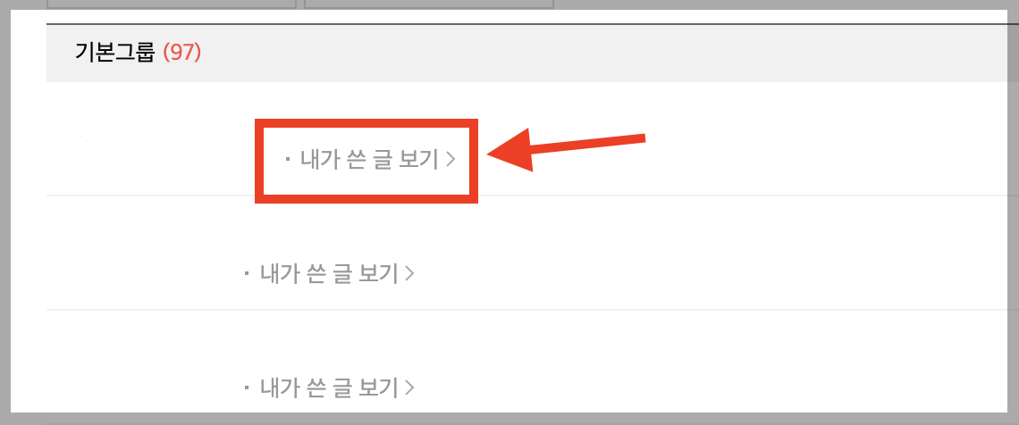 ▼ 여기서 각 카페마다 [내가 쓴 글 보기] 메뉴가 있는데, 이곳에 들어가면 내가 작성한 글을 한꺼번에 전체선택하여 삭제할 수 있습니다.