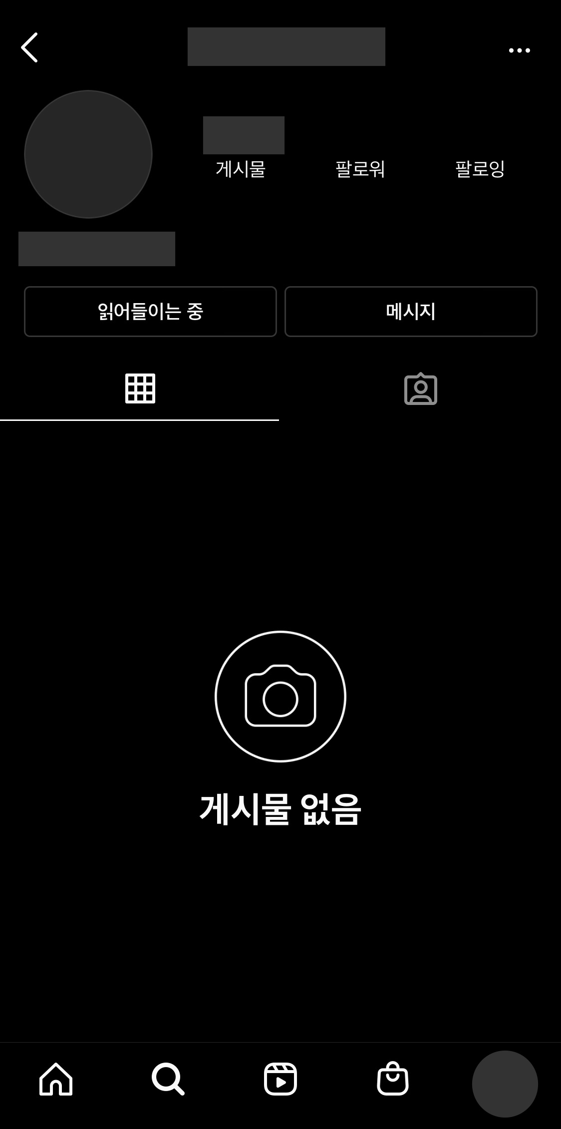 ▼ 다른 계정을 이용해서 삭제한 아이디를 찾아보니, 아직 검색은 됩니다.(대신 게시물 사진, 팔로워, 팔로잉이 보이지 않습니다.)