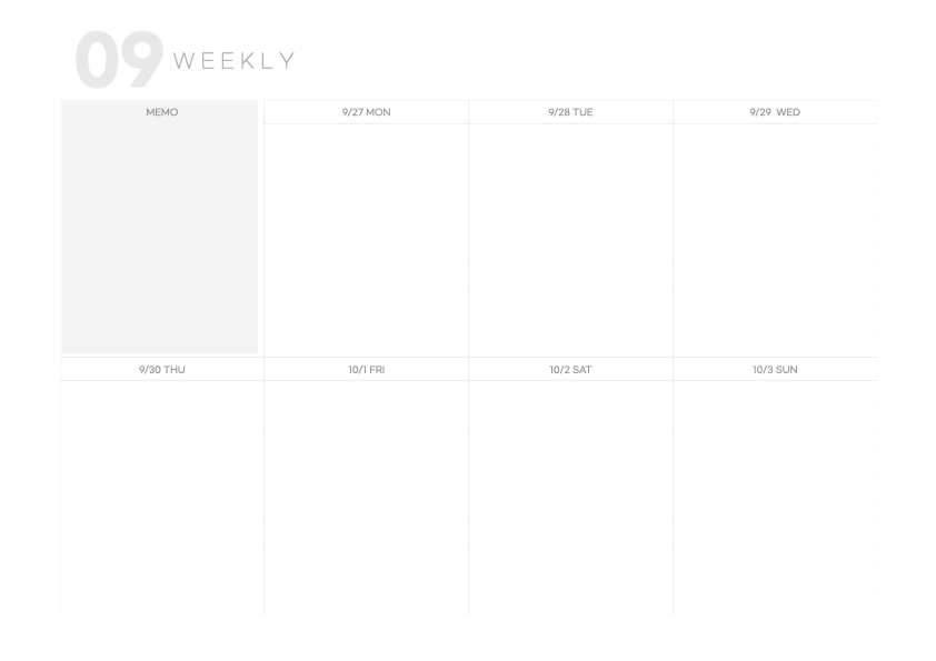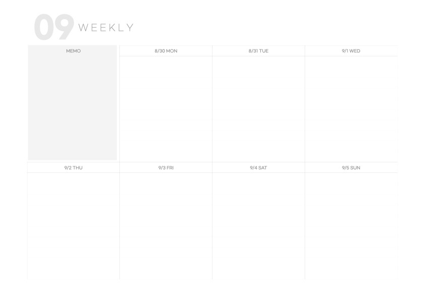 위클리에서 먼슬리로 이동하기 위해서는 왼쪽 상단의 09 버튼을 누르면 됩니다. 이때도 역시 하이퍼링크 기능이 활성화 되어 있어야 합니다.