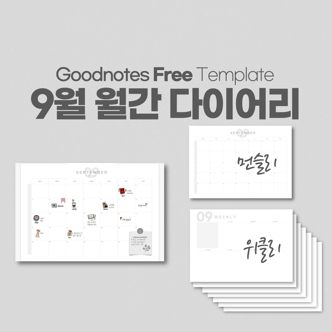 | 굿노트 9월 월간 다이어리 속지 세로형 공유 / Goodnotes September Diary Template (2) | 2021.08.24 |