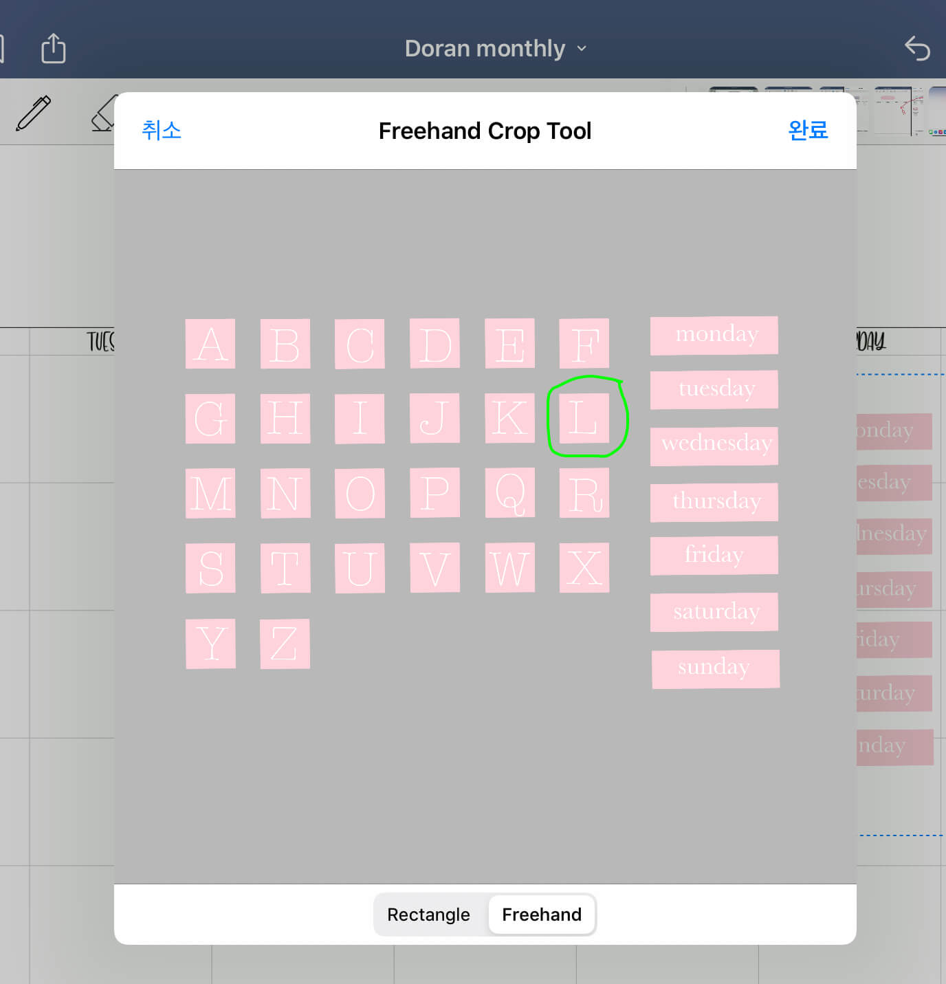아래와 같이 자르기 툴이 나오게 되는데, 그중 Freehand를 선택합니다. 이 툴은 원하는 만큼만 이미지를 잘라서 사용할 수 있는 툴입니다.
