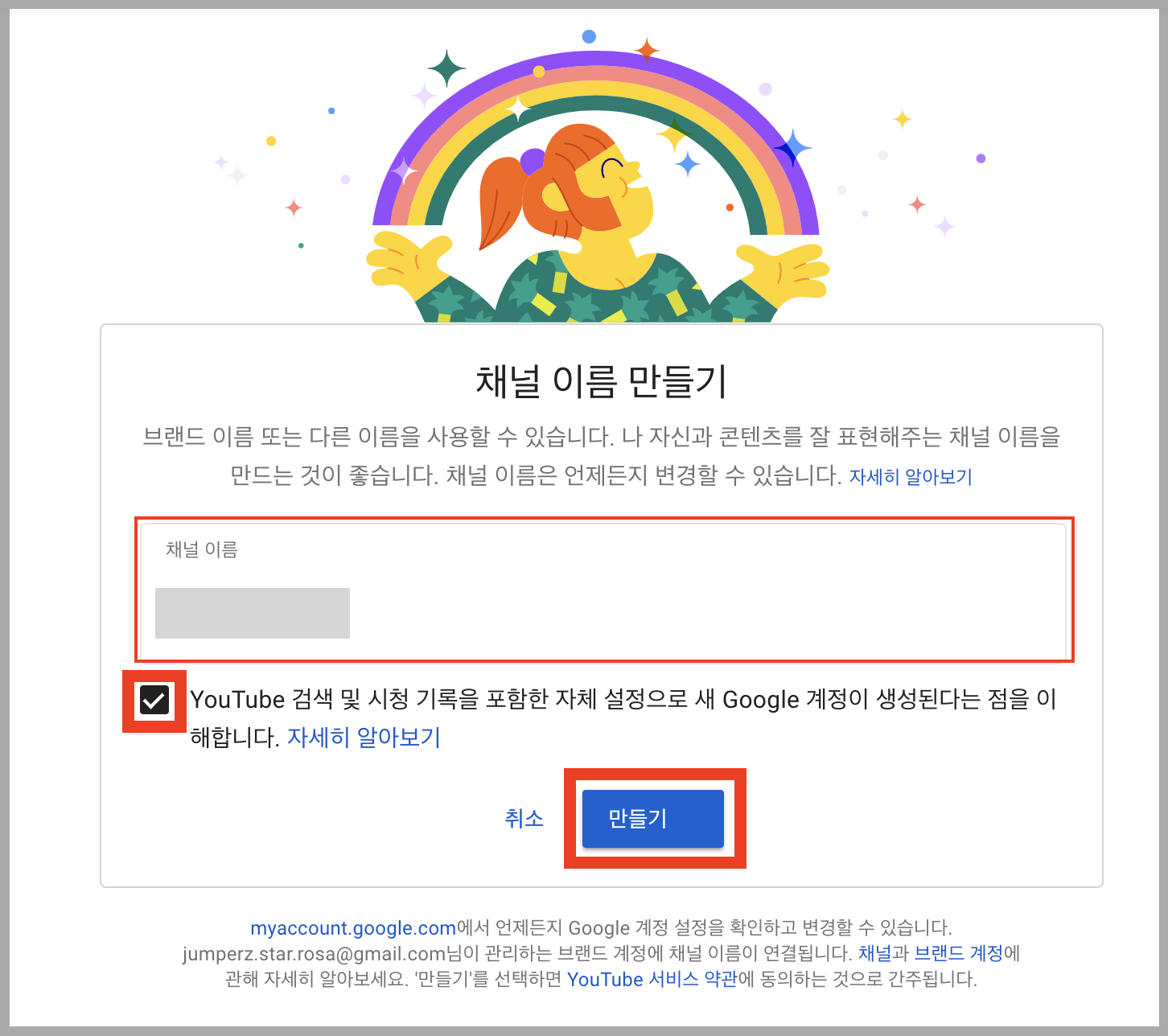 ▼ 내가 만들고자 하는 이름을 넣고, 체크박스에 체크를 한 뒤 [만들기]를 누릅니다.