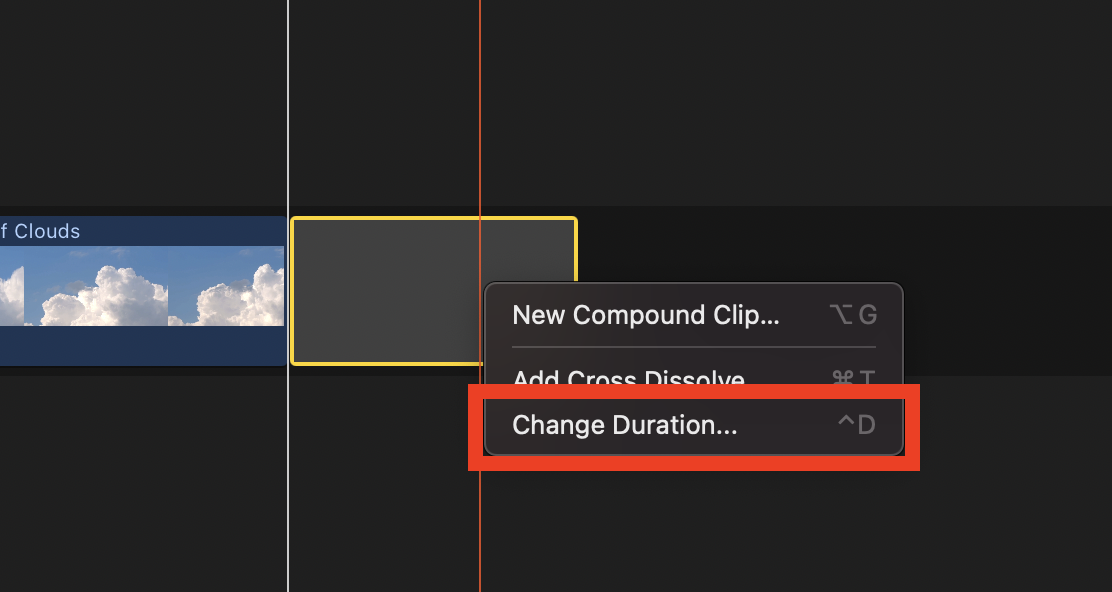 ▼ 또는 빈공간 영상에서 우클릭(두 손가락 클릭, 혹은 단축키 control + D)을 하면 Change Duration 메뉴를 선택한 뒤