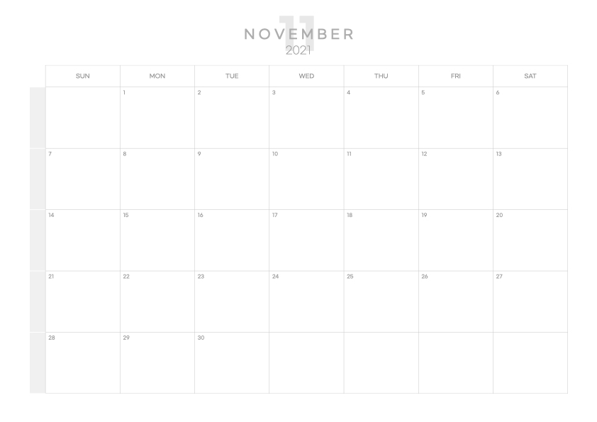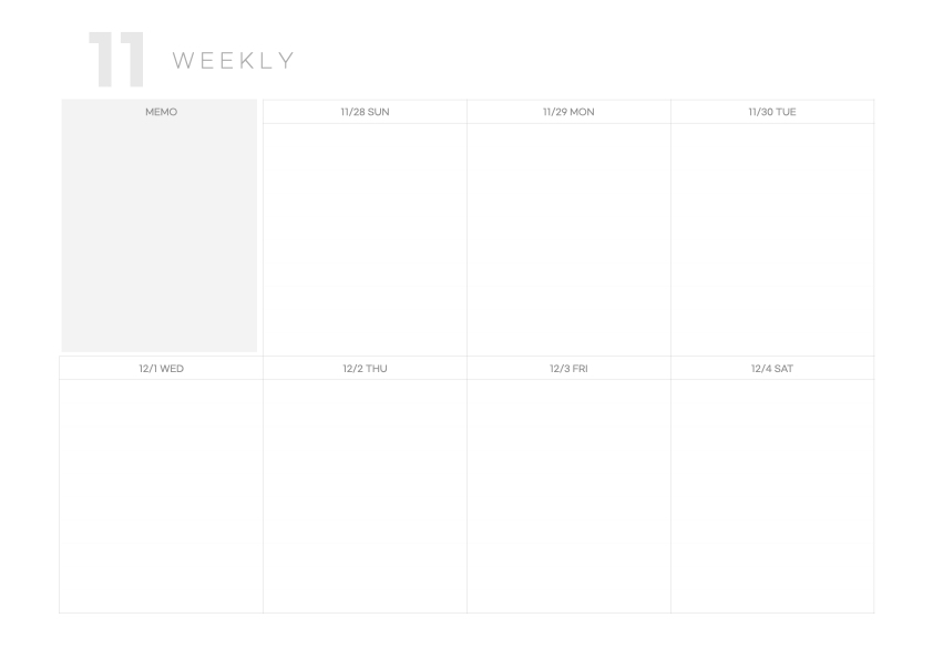 하이퍼링크 다이어리 속지는 월요일 시작 버전과 일요일 시작 버전이 있습니다. 이번 11월은 총 5주입니다. 원하는 버전으로 선택한 뒤 다운로드하면 됩니다. 하이퍼링크는 먼슬리 가장 왼쪽의 회색, 그리고 위클리 상단 숫자에 있습니다.