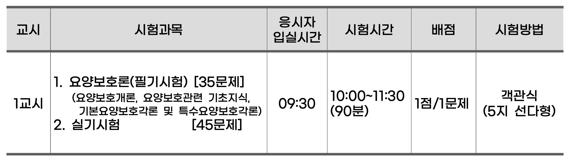 2022년 요양보호사 자격증 시험과목