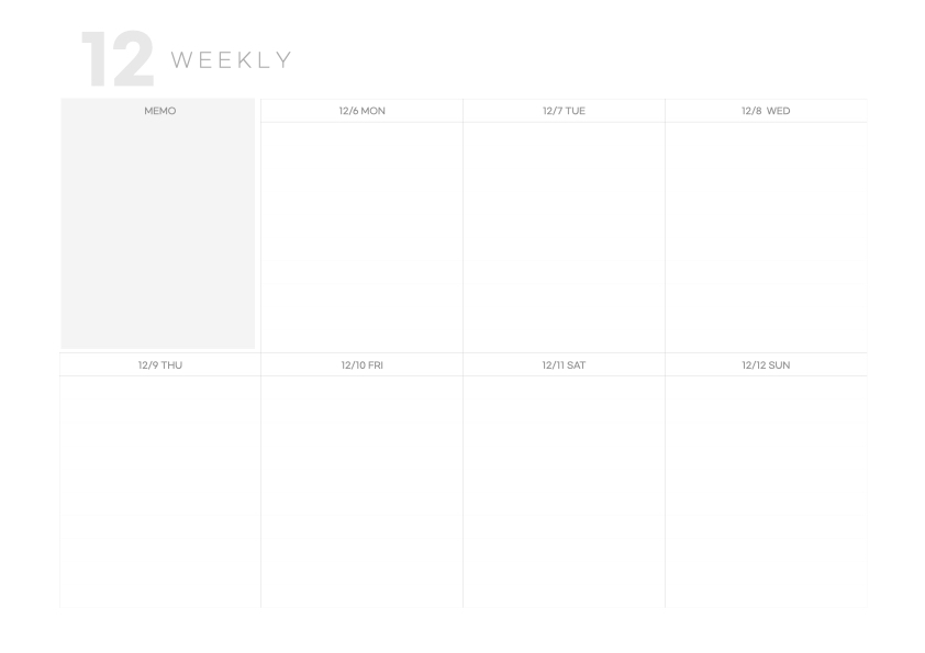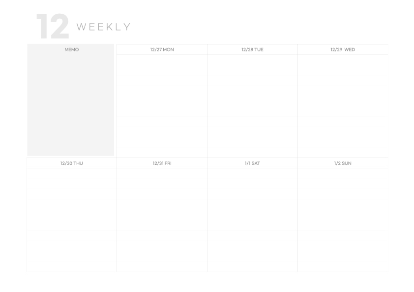 안녕하세요 도란입니다. 오늘은 아이패드 노트 어플 굿노트에서 사용할 수 있는 12월 다이어리 속지를 가지고 왔습니다. 먼슬리 다이어리 1장과 위클리 다이어리 속지 5장으로 되어있습니다. 월요일 시작 버전과 일요일 시작 버전이 있습니다 :) 취향대로 다운로드하면 될 것 같습니다.