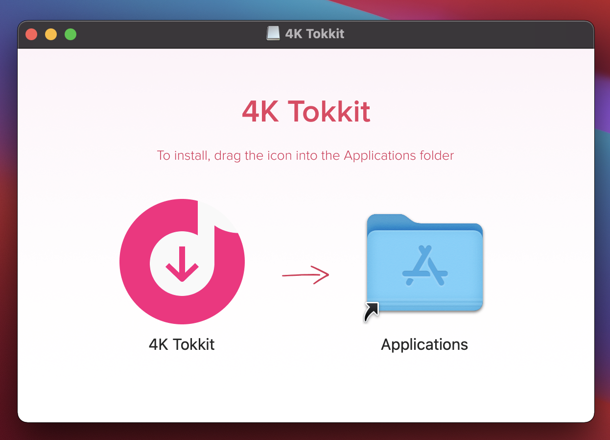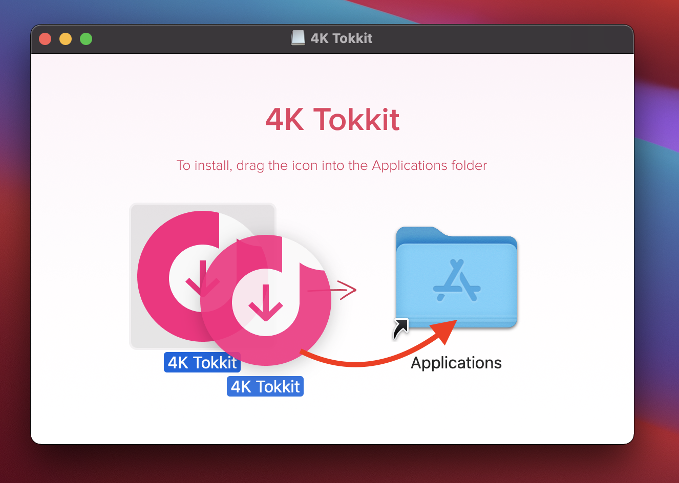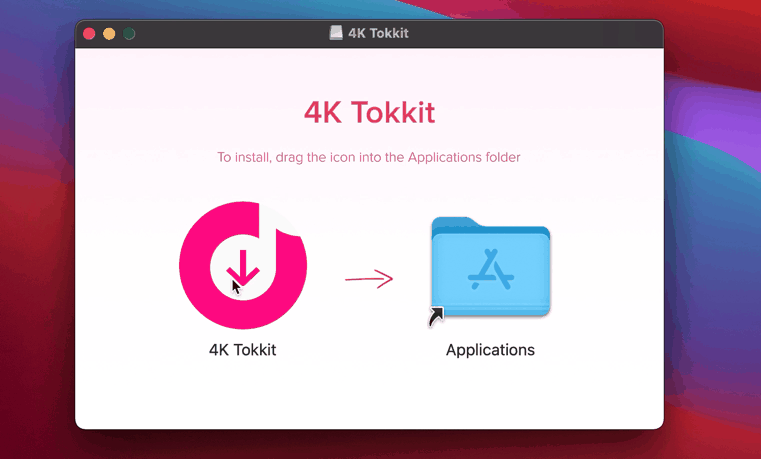 ▼ 아래와 같이 설치 화면이 나오면 왼쪽에 있는 4K Tokkit 버튼을 누른 채로 오른쪽에 있는 Applications 폴더로 드래그해서 이동해줍니다.