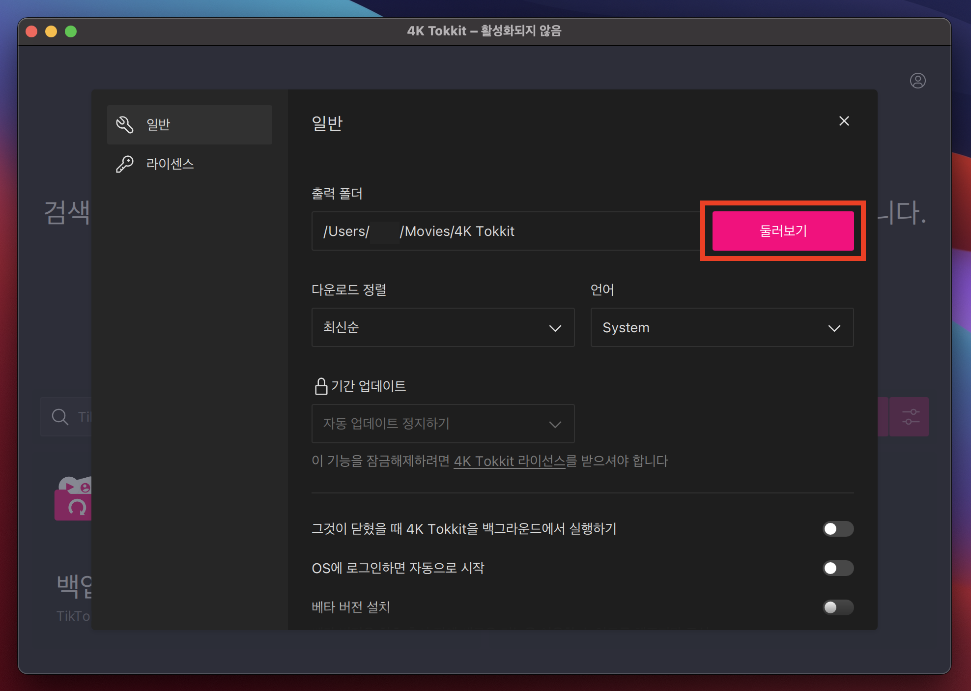 ▼ 먼저 4K Tokkit 홈페이지에 접속합니다. 그리고 오른쪽 상단에 있는 PC 환경 설정 버튼을 선택한 뒤, 자신이 사용하고 있는 컴퓨터의 OS를 선택합니다. (저는 macOS를 사용하고 있습니다.) 그리고 언어가 영어나 다른 언어로 나온다면 옆에 있는 언어 설정을 한국어로 설정해주세요.