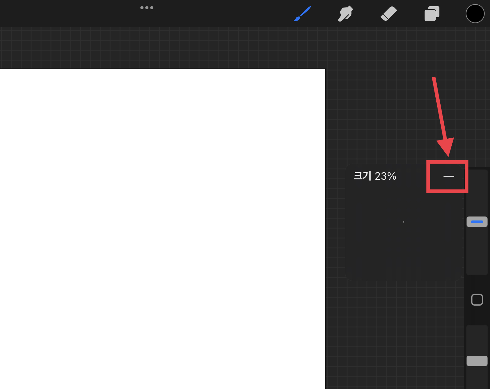 ▼ 이제 브러시 굵기를 다른 크기로 바꾸어도 크기 조절 바에 회색깔 메모리가 있어서 쉽게 돌아갈 수 있습니다.