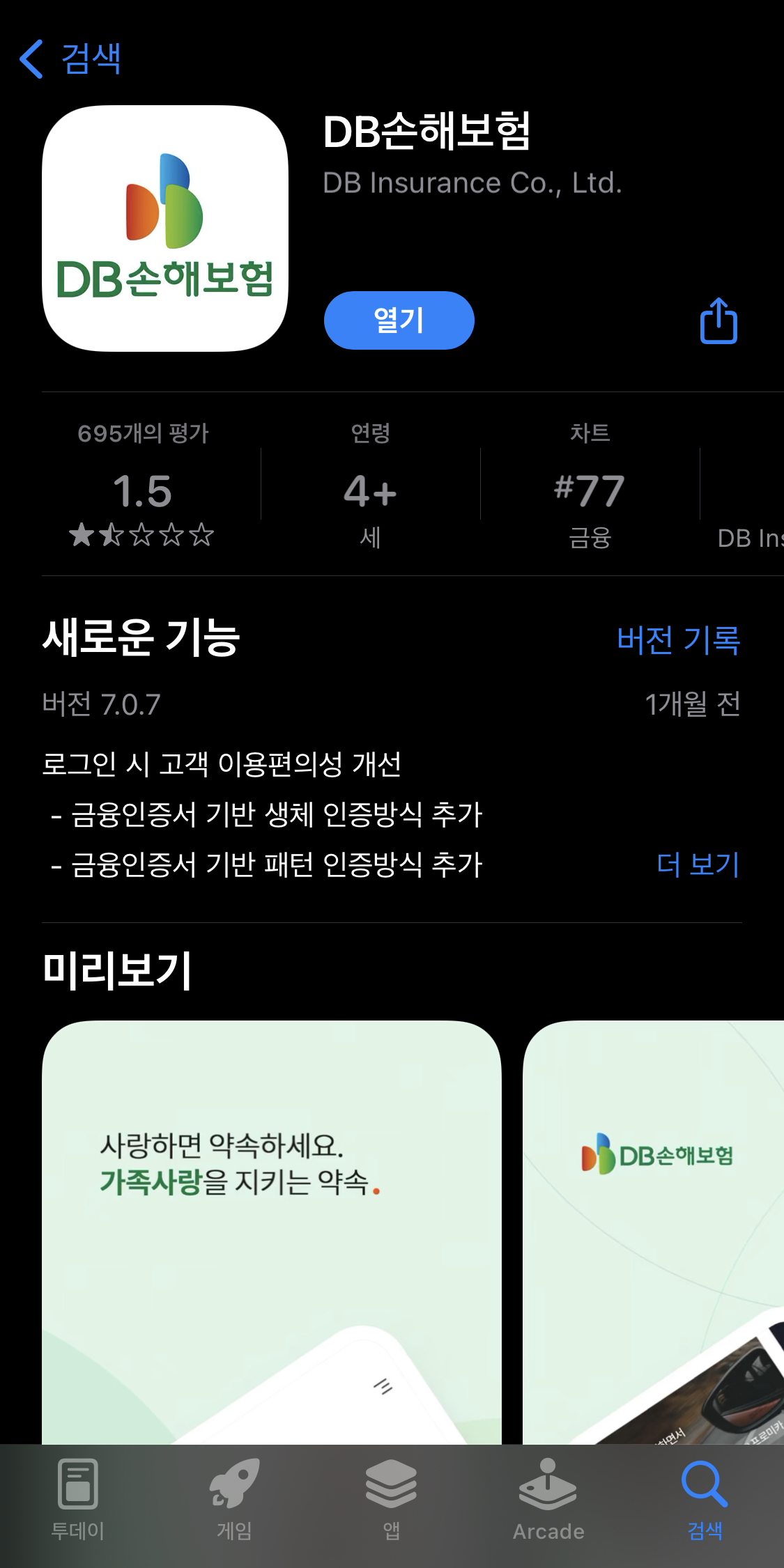 ▼ 먼저 앱스토어에서 DB손해보험 어플을 다운로드합니다.