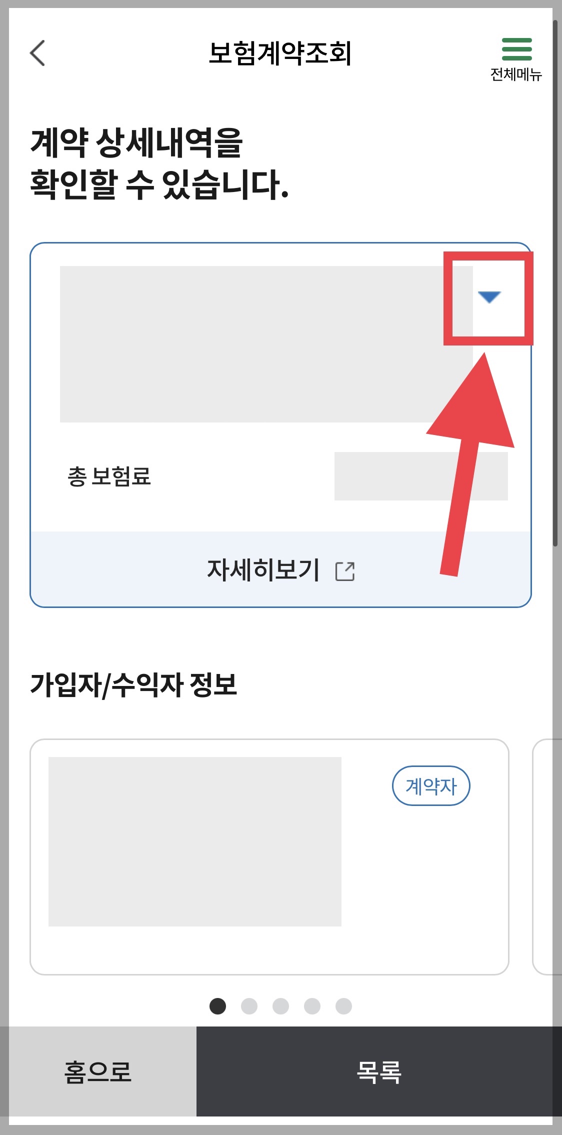▼ 인증을 완료하고 나면 본인이 계약한 보험들의 목록이 나옵니다. 보험 내용을 선택합니다.