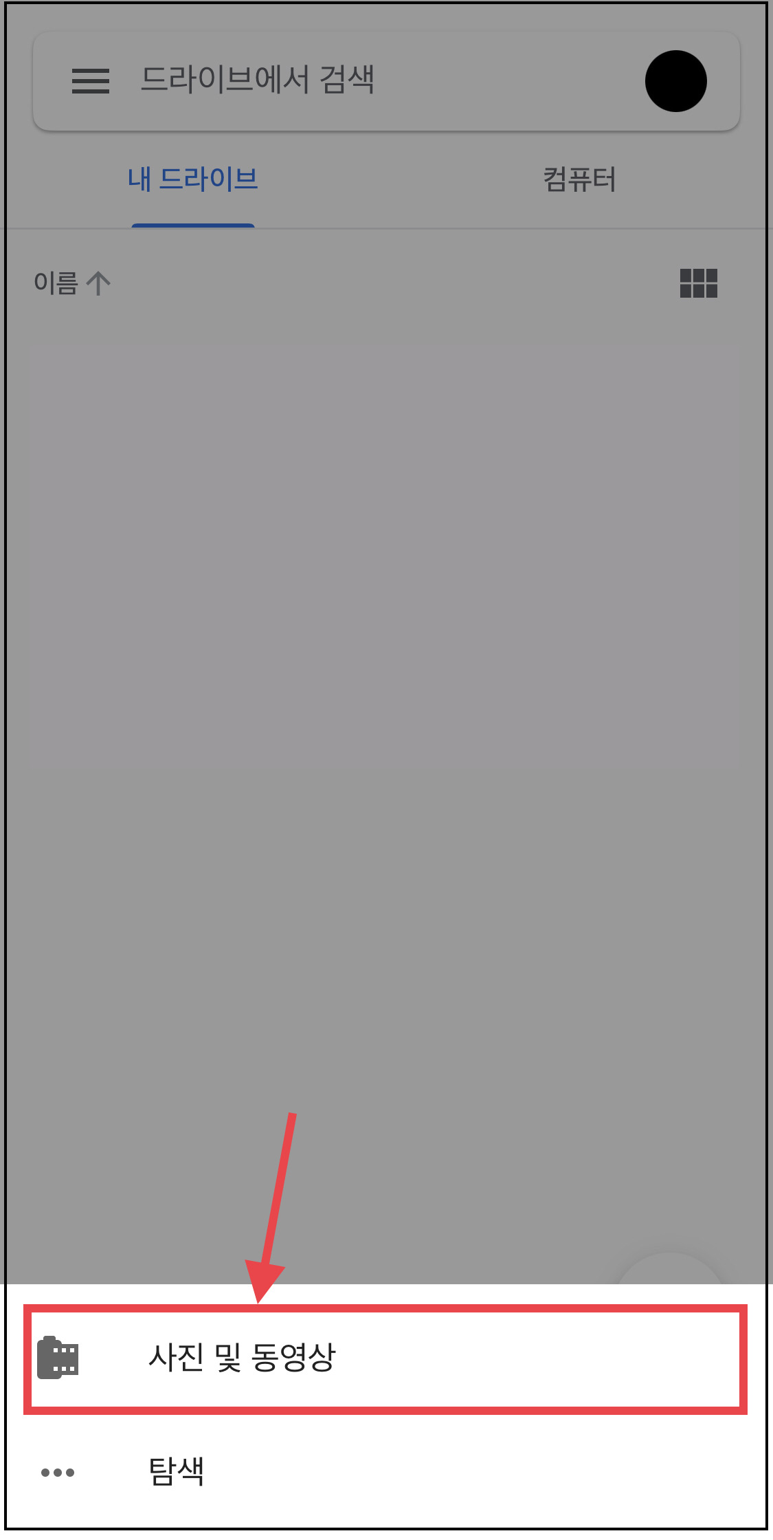 ▼ 그리고 [사진 및 동영상]을 선택합니다.