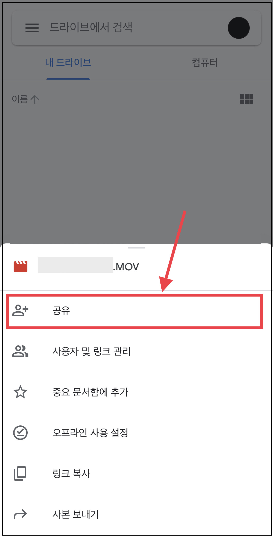 구글드라이브에 업로드가 된 뒤에, 영상을 공유할 수 있는 링크를 만들어야 합니다.