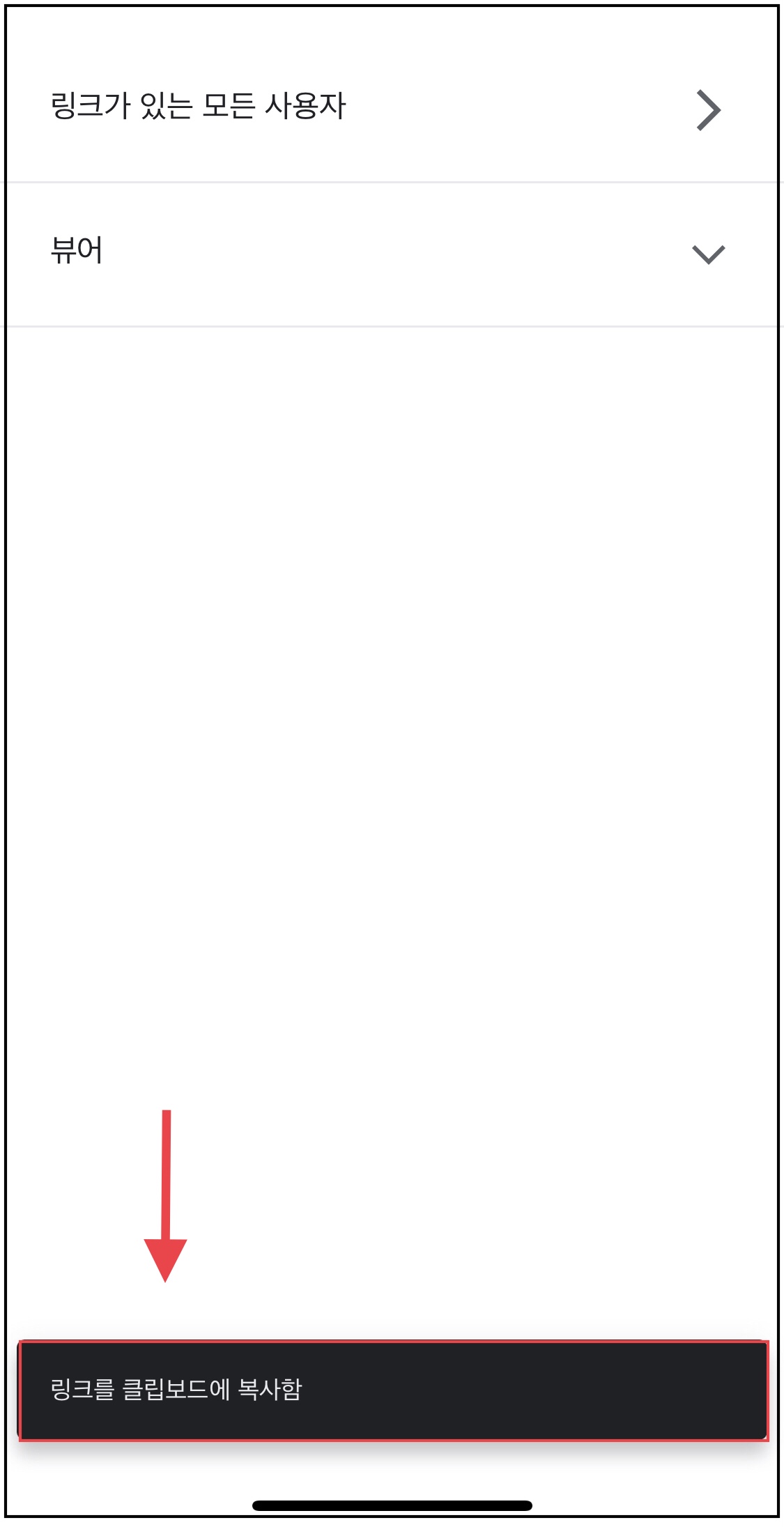 ▼ 그러면 아래와 같은 화면이 되고 오른쪽 상단에 있는 [링크버튼]을 누르면 링크가 복사가 됩니다.