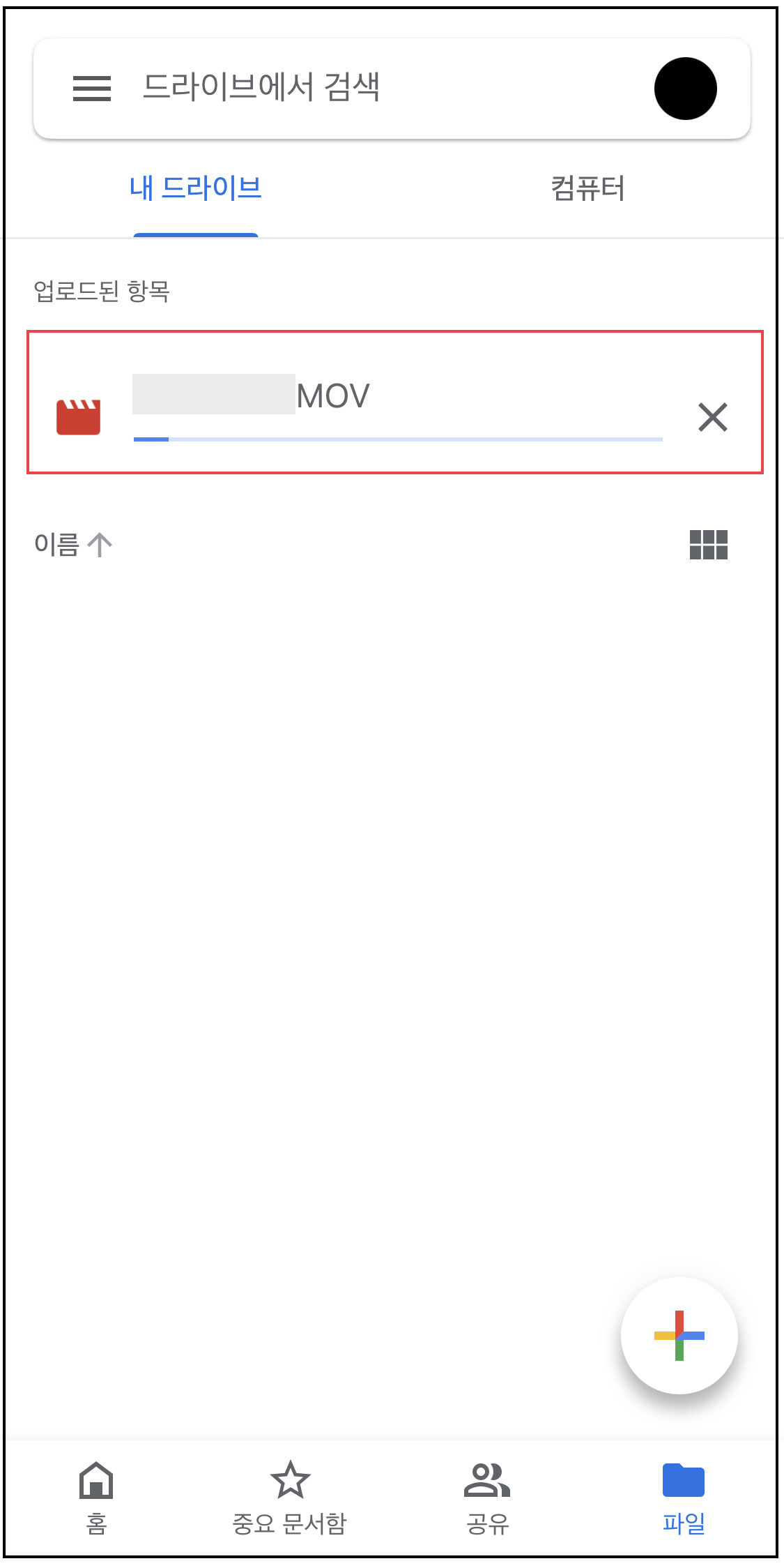 ▼ 아래와 같이 동영상이 구글드라이브에 업로드가 됩니다. (영상 크기에 따라서 시간이 다소 걸릴 수 있습니다.)
